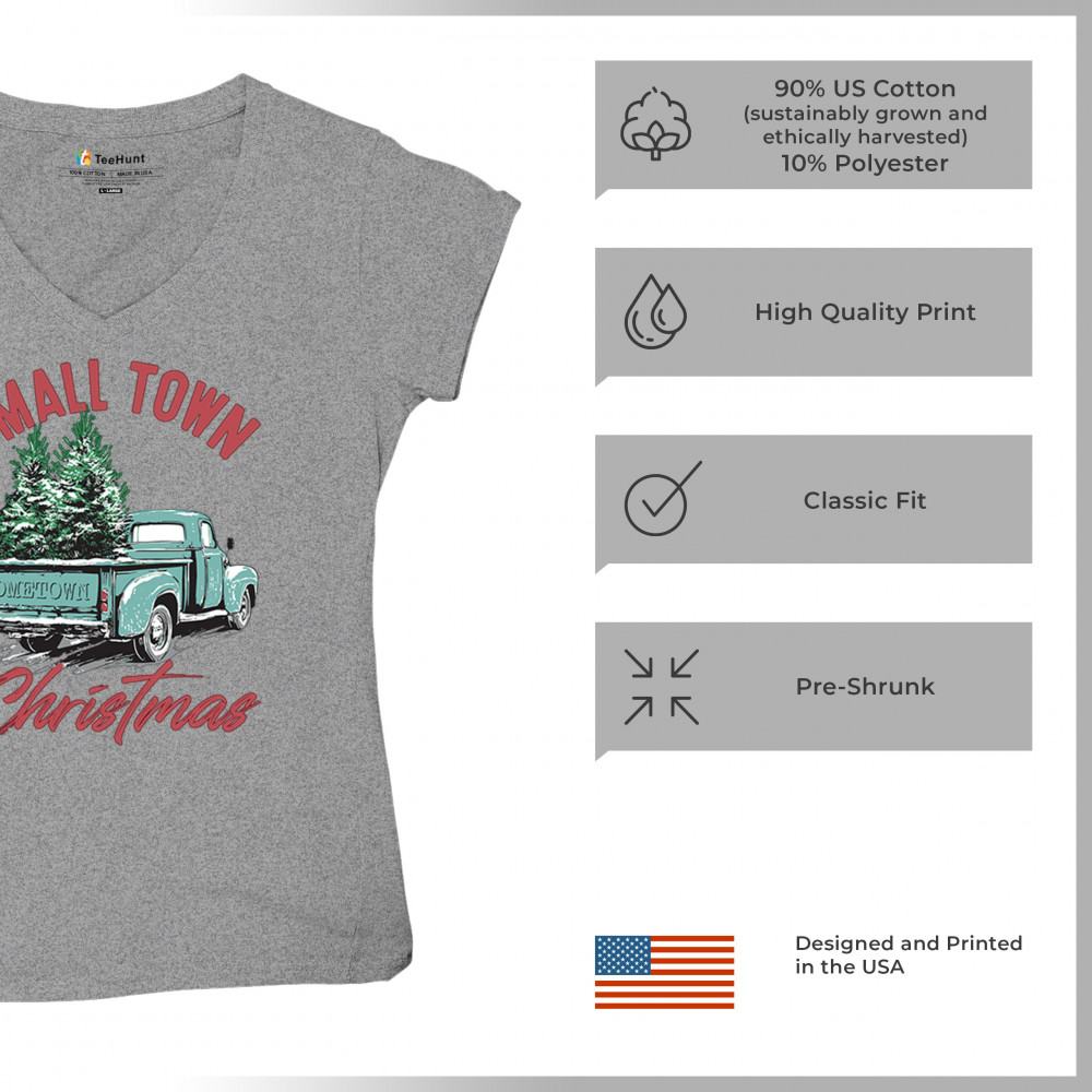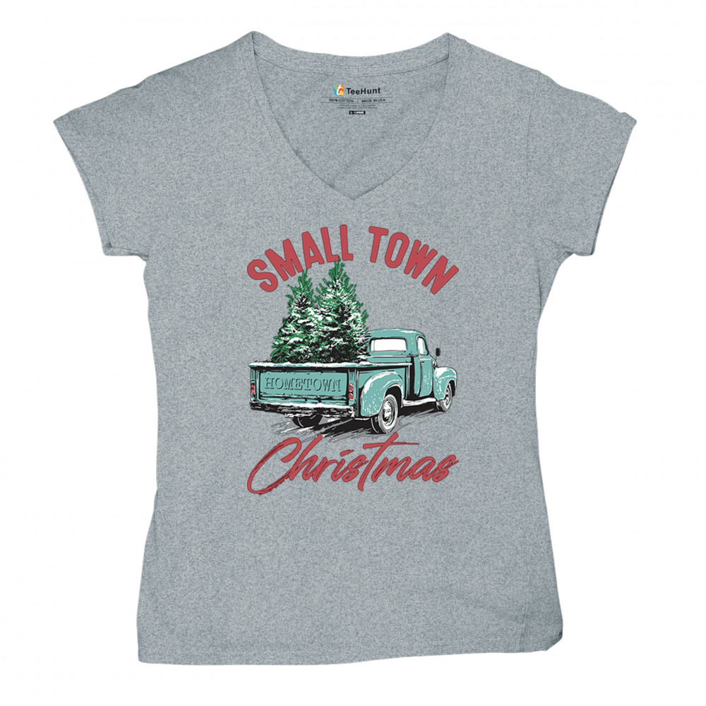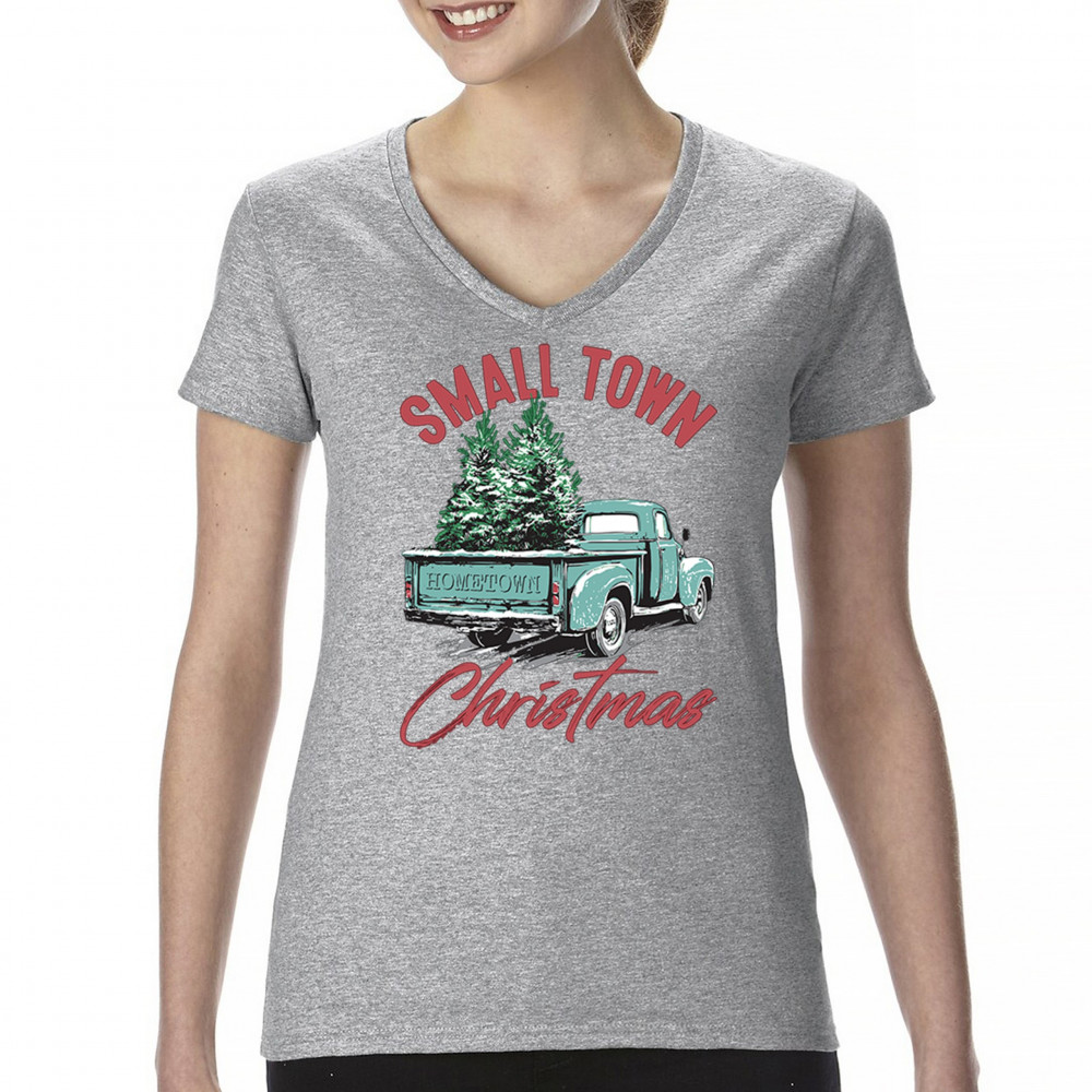 Embrace holiday nostalgia with this "Small Town Christmas" design featuring a vintage truck and Christmas trees. Perfect for rustic decor lovers.