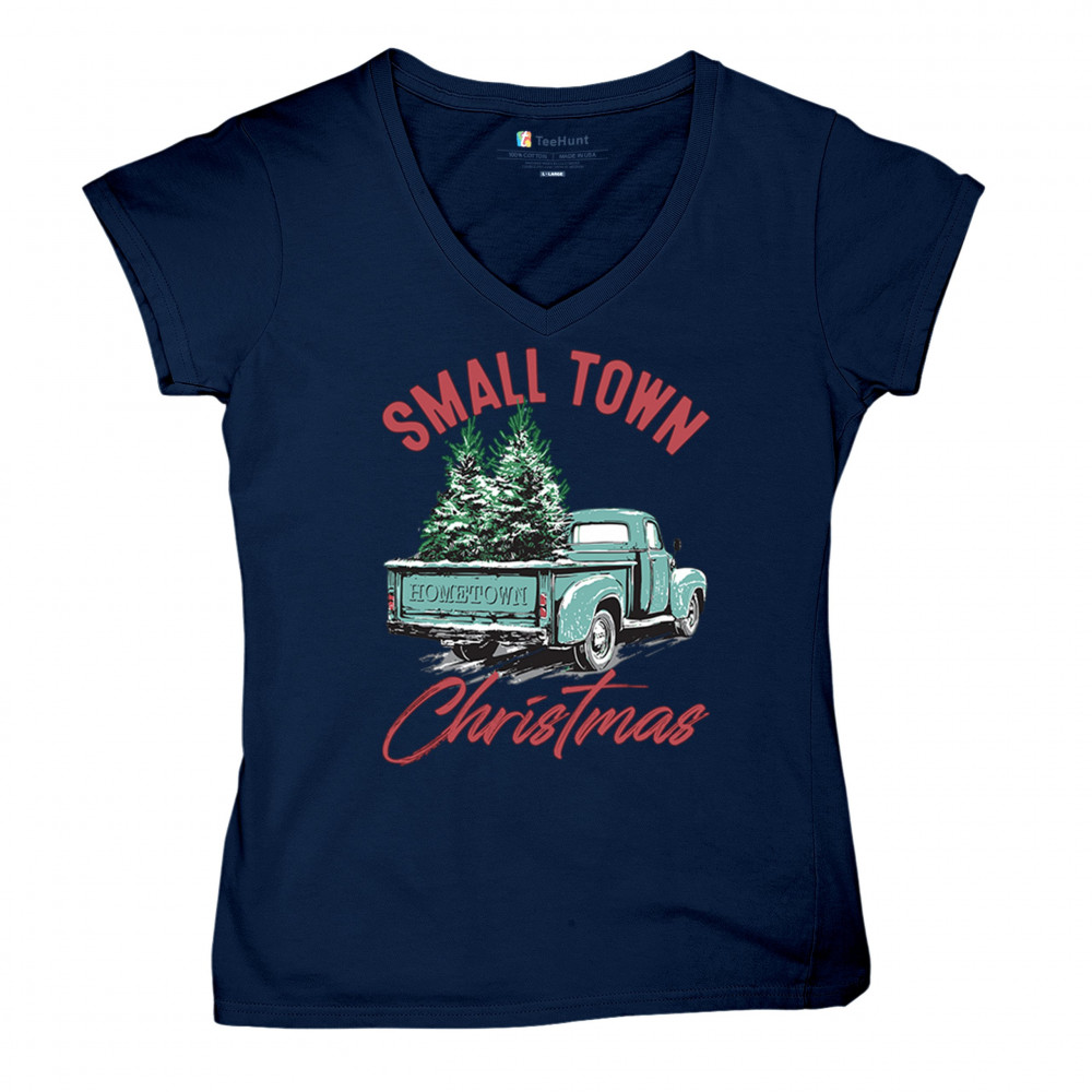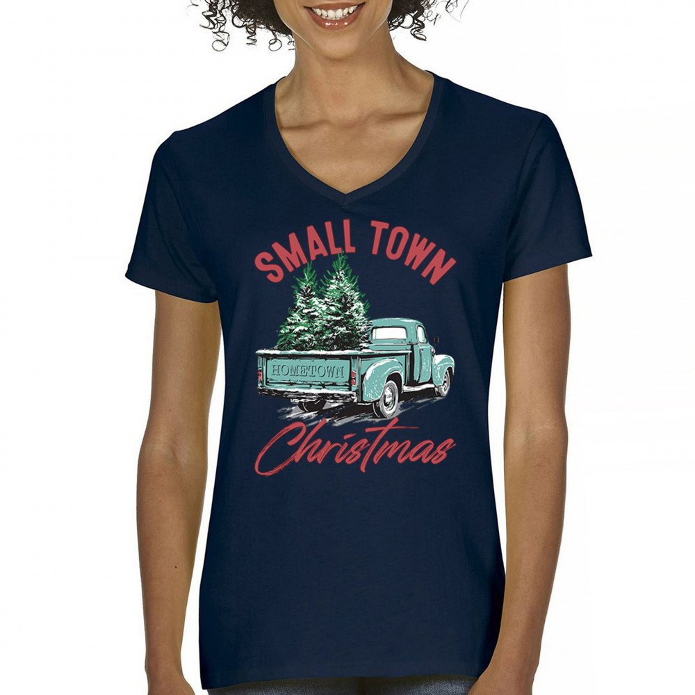 Embrace holiday nostalgia with this "Small Town Christmas" design featuring a vintage truck and Christmas trees. Perfect for rustic decor lovers.
