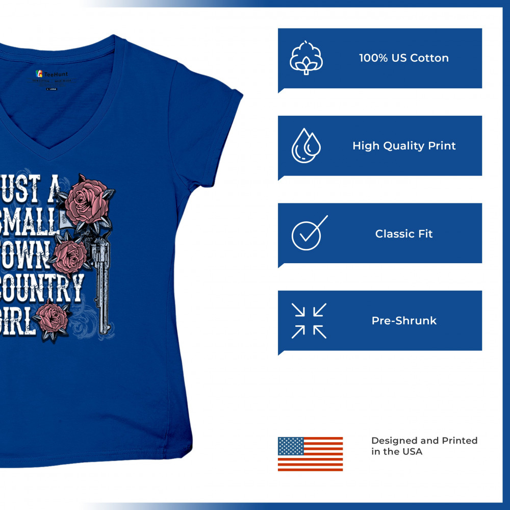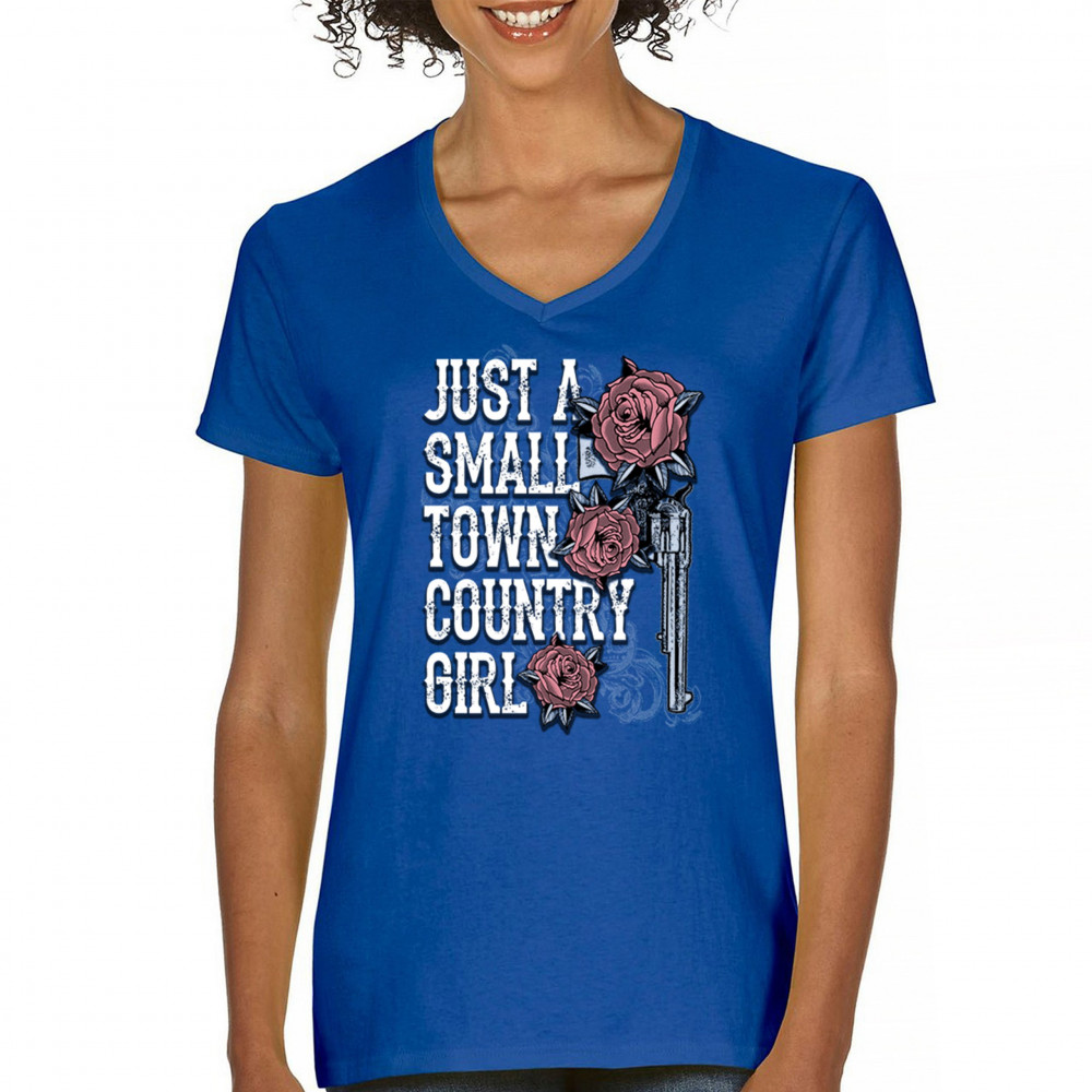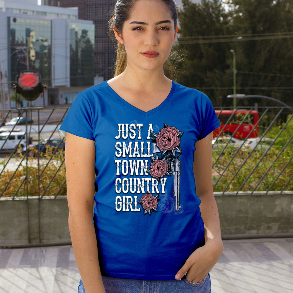 Rustic small town country girl design with rose and revolver art. Great for cowgirls, rodeos, fairs, and southern pride style.