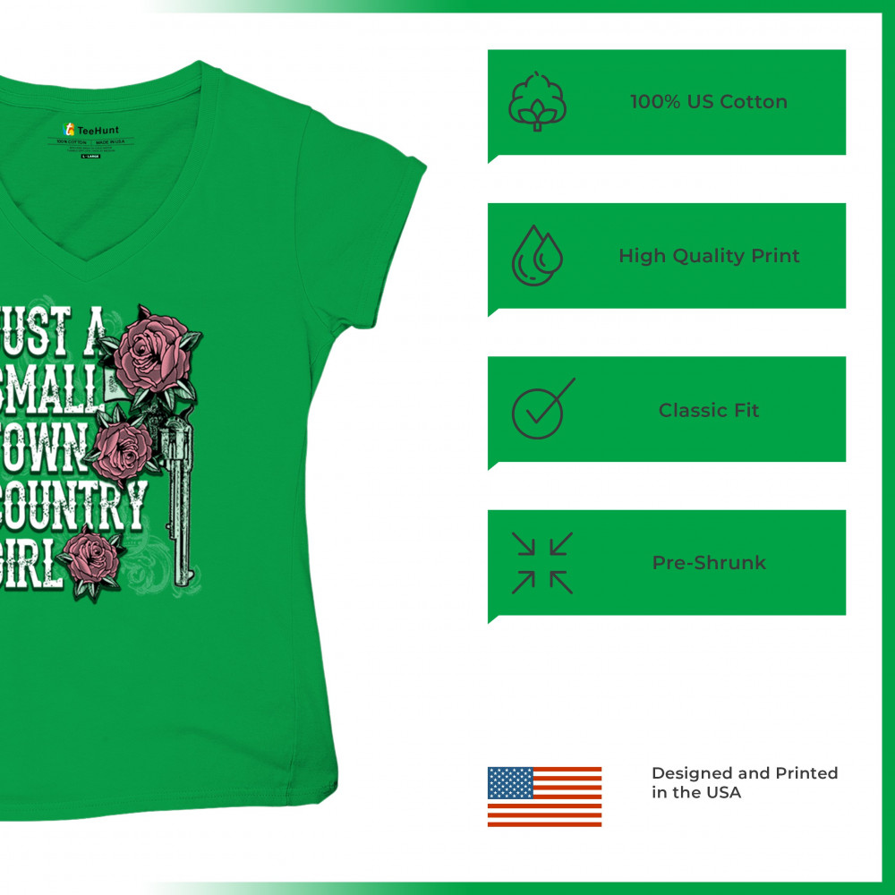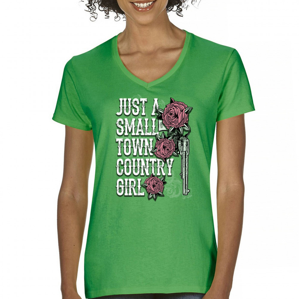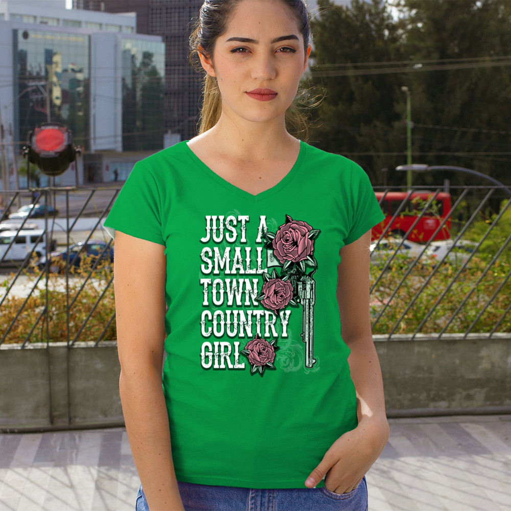 Rustic small town country girl design with rose and revolver art. Great for cowgirls, rodeos, fairs, and southern pride style.