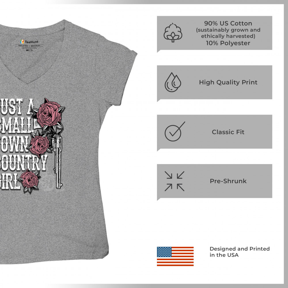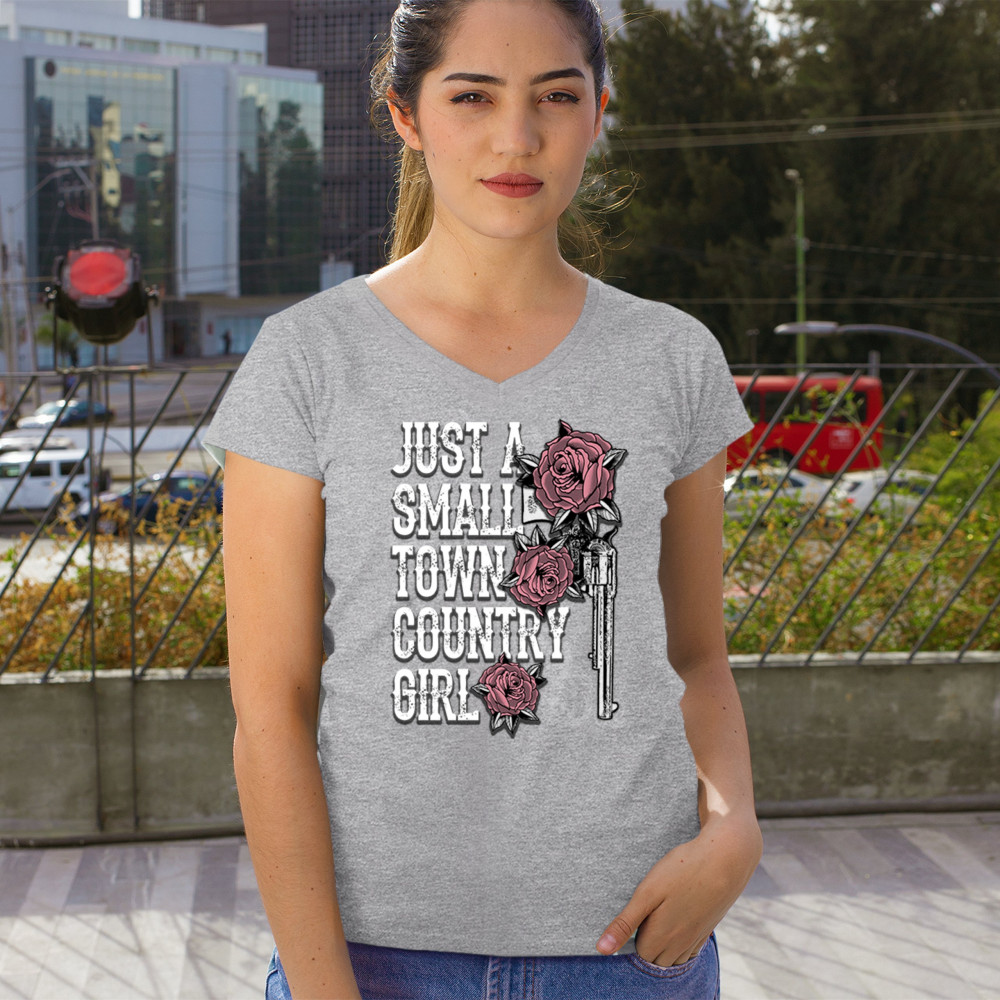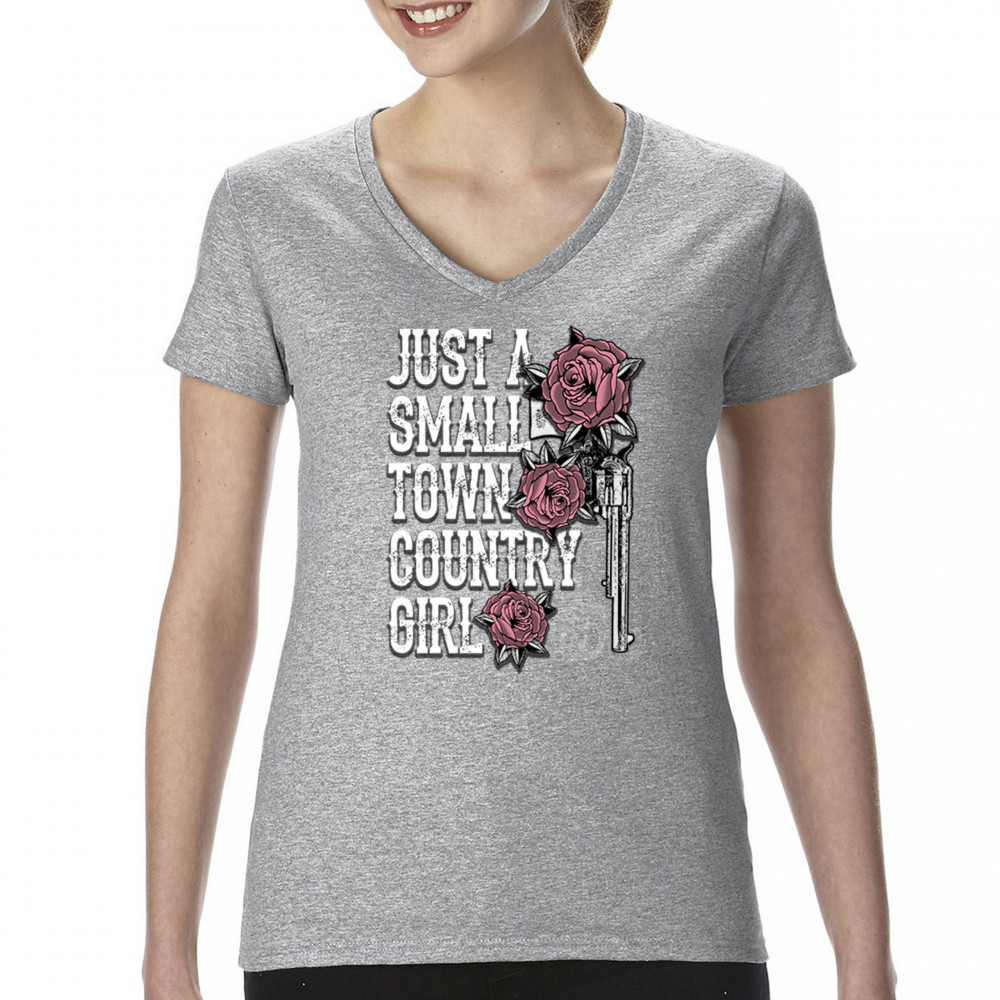 Rustic small town country girl design with rose and revolver art. Great for cowgirls, rodeos, fairs, and southern pride style.