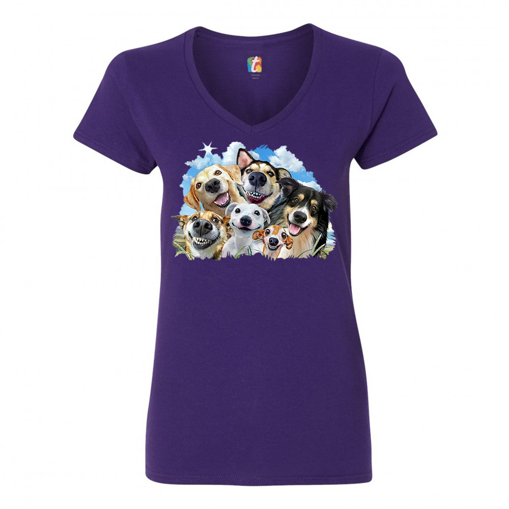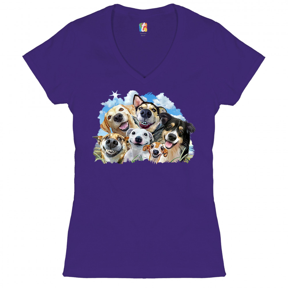 SMILING DOGS' SELFIE women's v-neck t-shirt funny animal dog lover cute tee purple