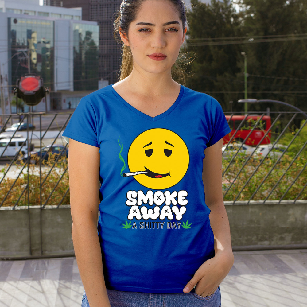 Smiley face with joint and “Smoke Away a Sh*tty Day†message. A perfect cannabis design for stoners, chillers, and sarcastic stress relief.