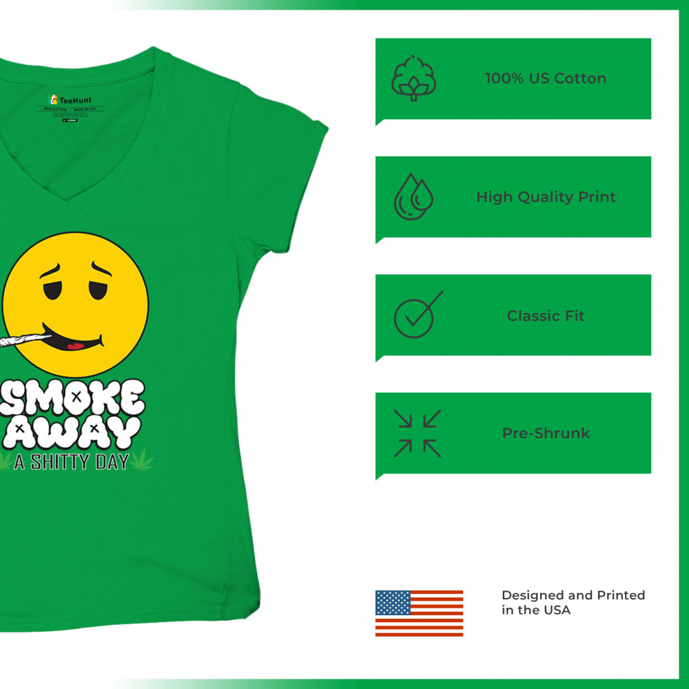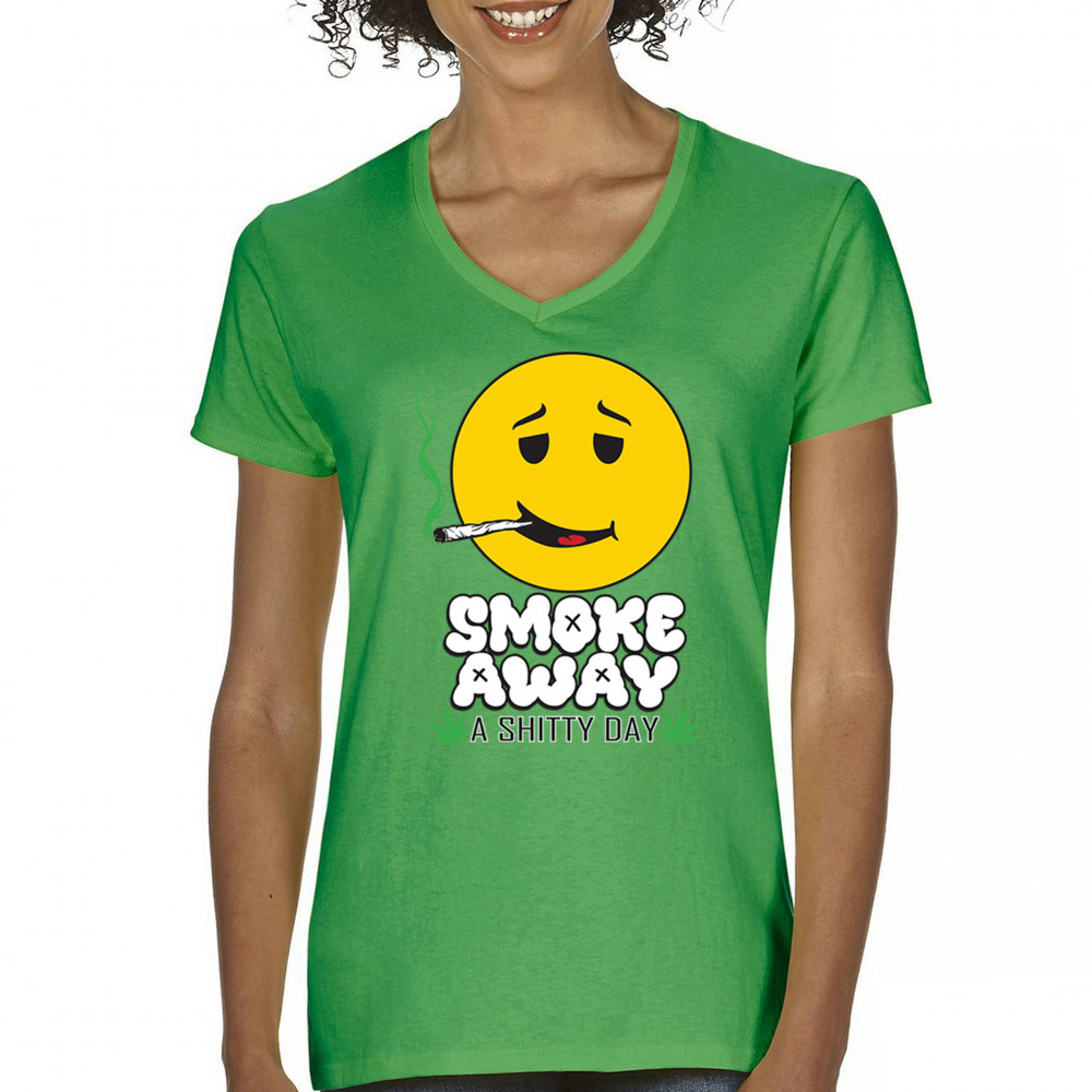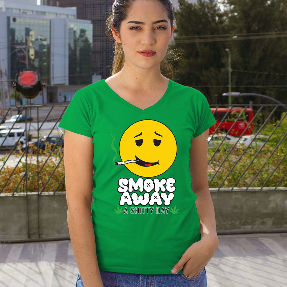 Smiley face with joint and “Smoke Away a Sh*tty Day†message. A perfect cannabis design for stoners, chillers, and sarcastic stress relief.
