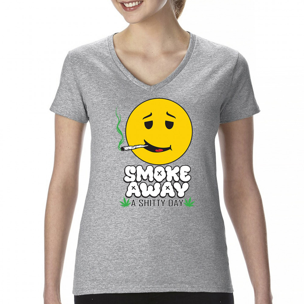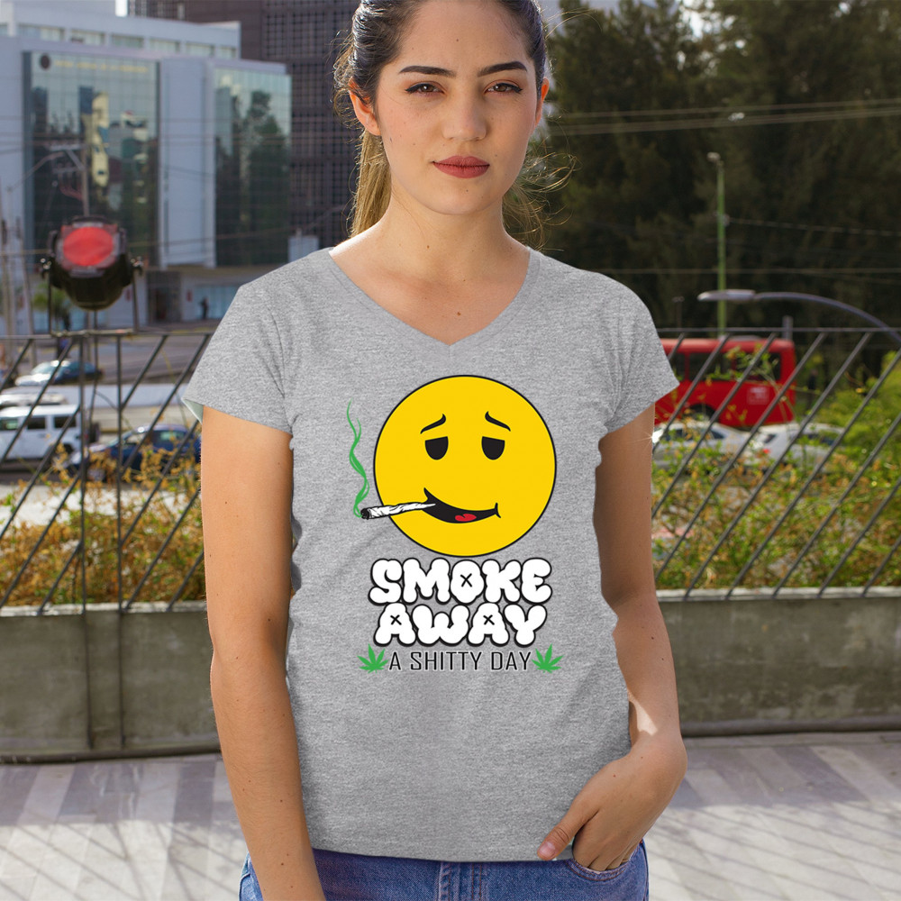 Smiley face with joint and “Smoke Away a Sh*tty Day†message. A perfect cannabis design for stoners, chillers, and sarcastic stress relief.
