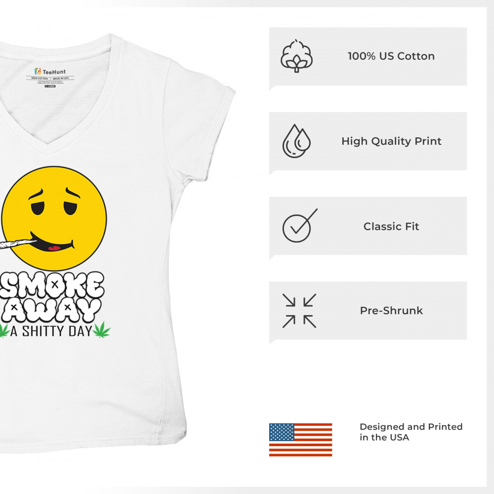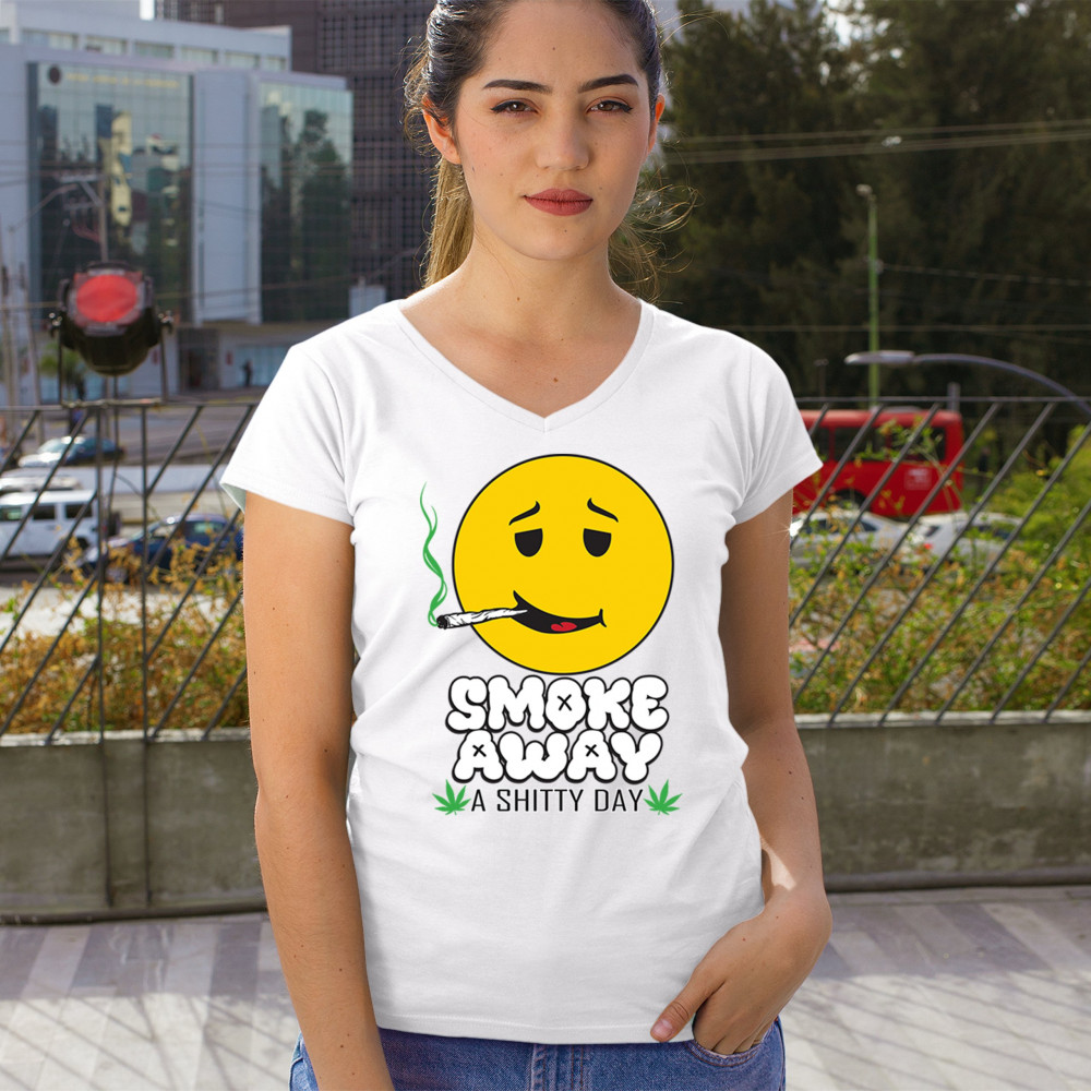 Smiley face with joint and “Smoke Away a Sh*tty Day†message. A perfect cannabis design for stoners, chillers, and sarcastic stress relief.