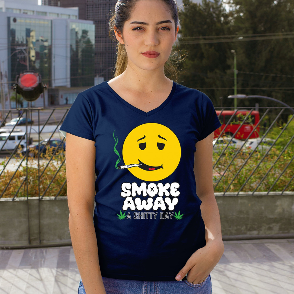 Smiley face with joint and “Smoke Away a Sh*tty Day†message. A perfect cannabis design for stoners, chillers, and sarcastic stress relief.