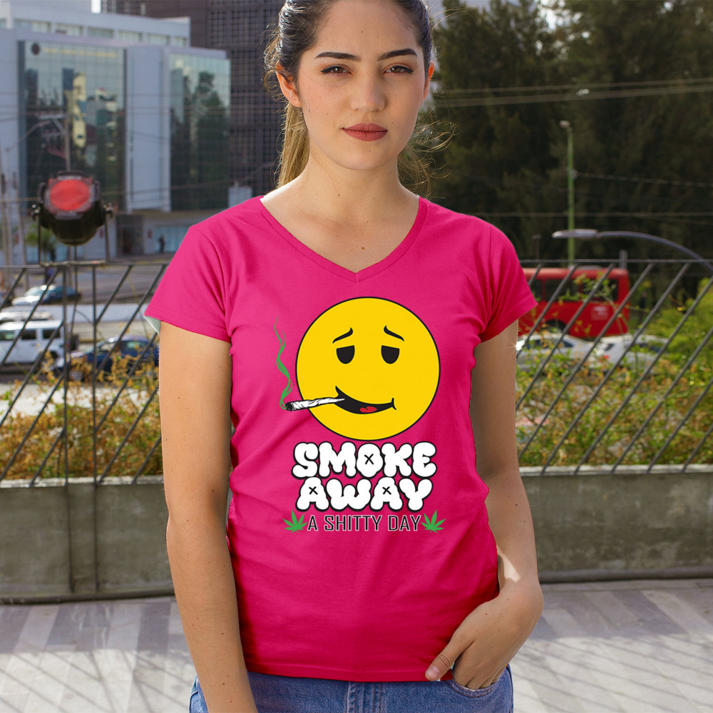 Smiley face with joint and “Smoke Away a Sh*tty Day†message. A perfect cannabis design for stoners, chillers, and sarcastic stress relief.
