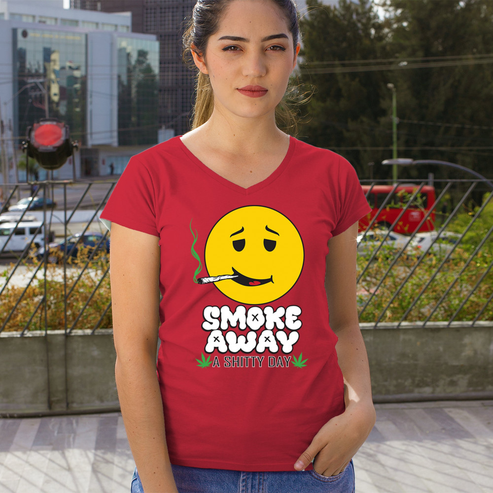 Smiley face with joint and “Smoke Away a Sh*tty Day†message. A perfect cannabis design for stoners, chillers, and sarcastic stress relief.