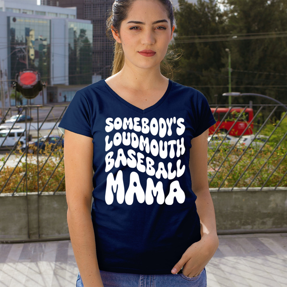 Show off your spirited support with the "Somebody's Loudmouth Baseball Mama" design. Perfect for game days, this bold and playful design captures your enthusiasm and pride.
