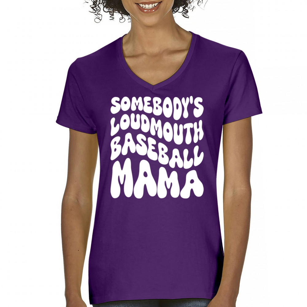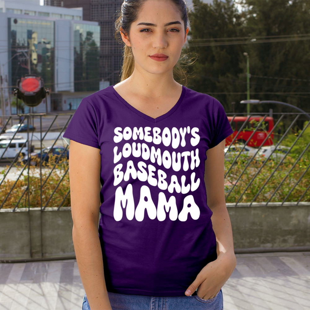 Show off your spirited support with the "Somebody's Loudmouth Baseball Mama" design. Perfect for game days, this bold and playful design captures your enthusiasm and pride.