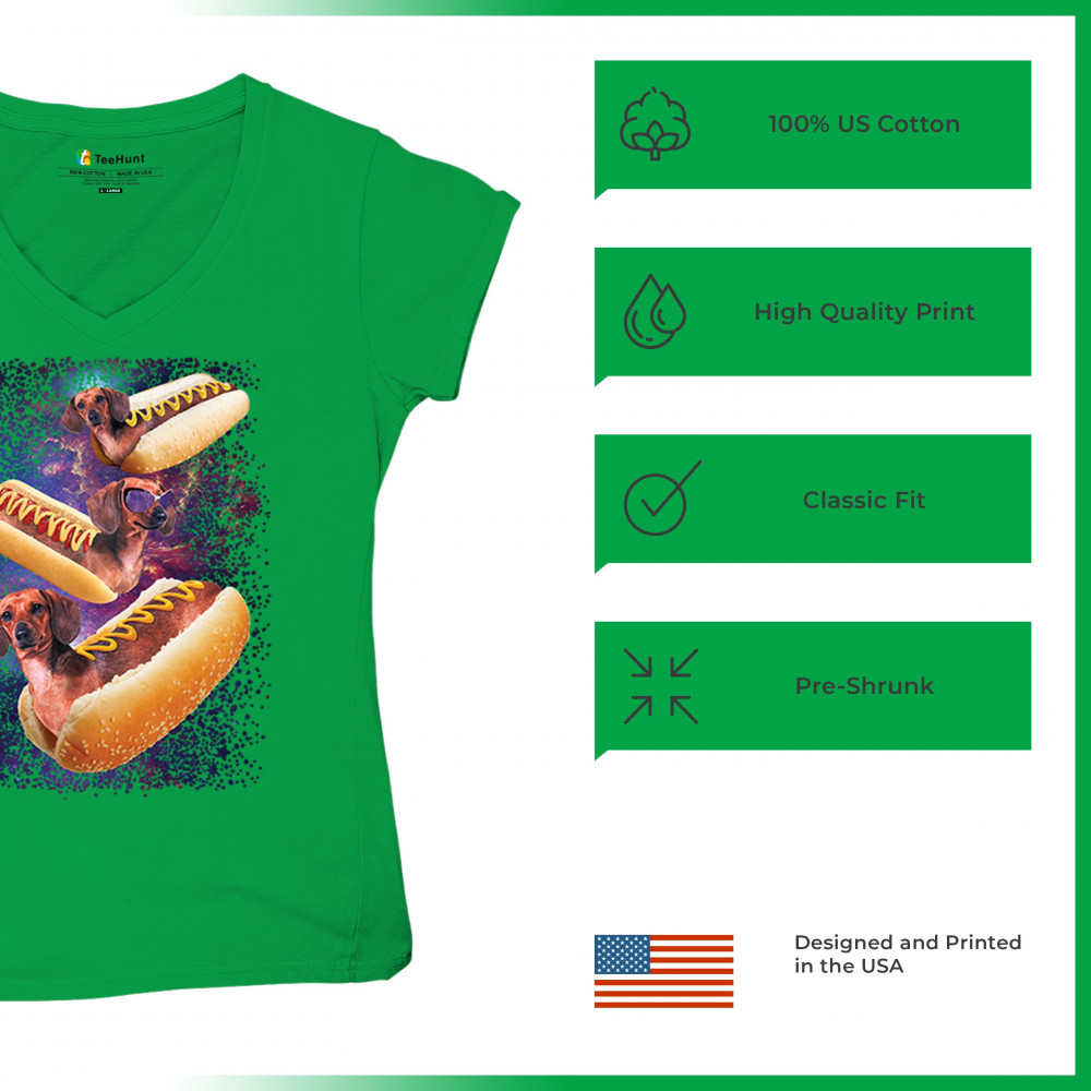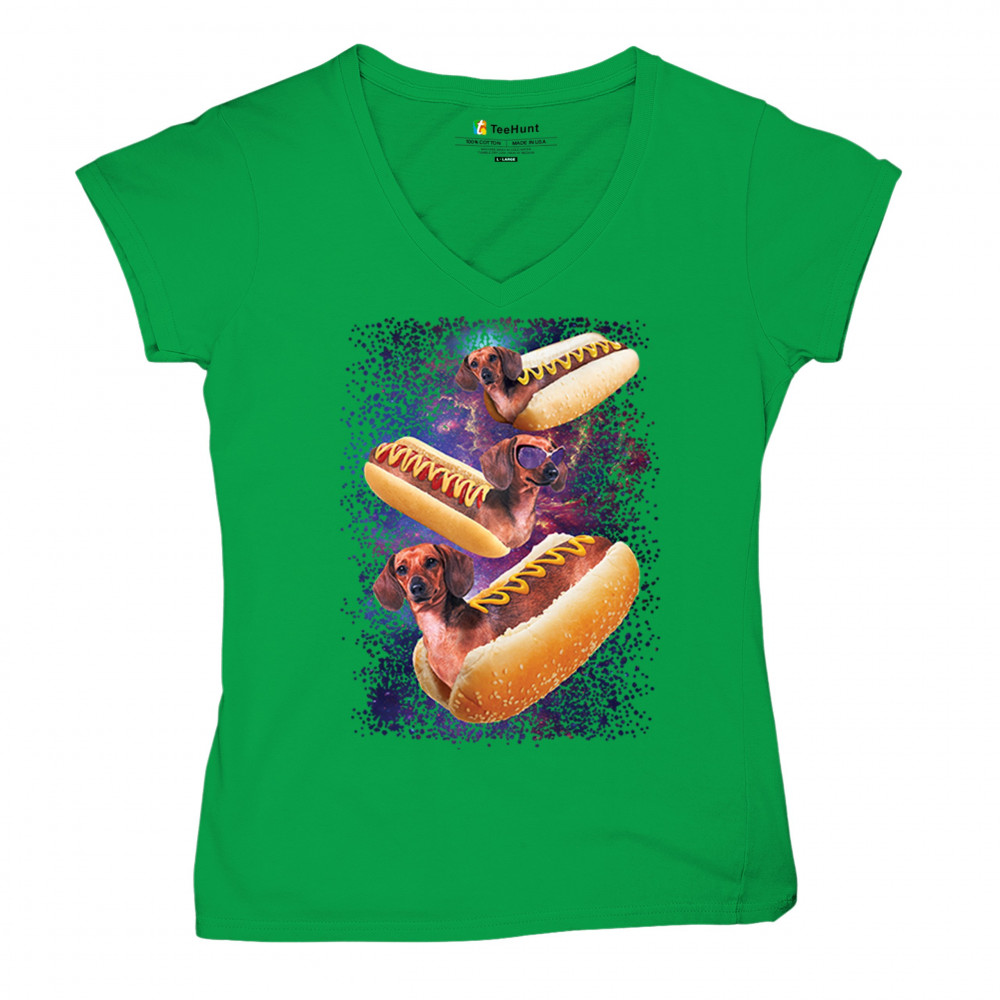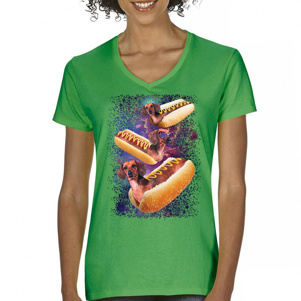 Quirky and fun tee featuring dachshunds as hotdogs in a cosmic setting. Perfect for dog and space lovers. Comfortable and durable.