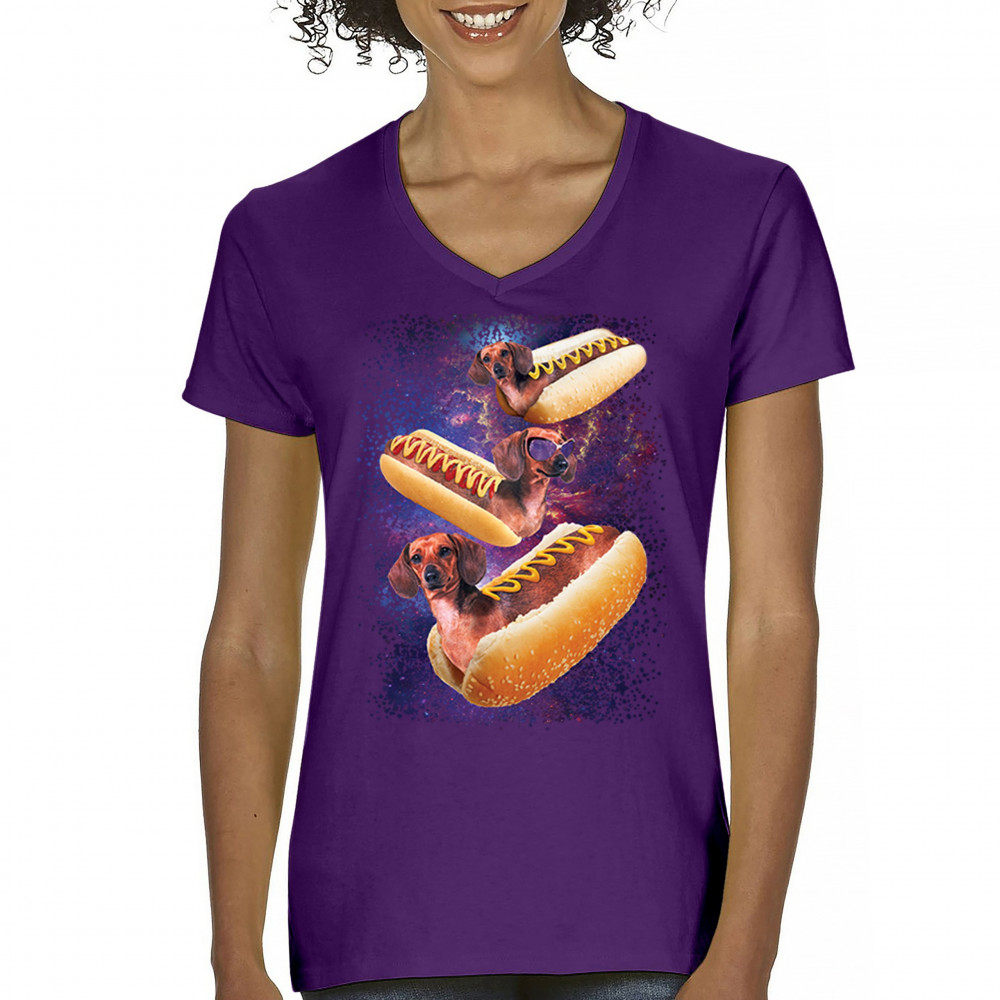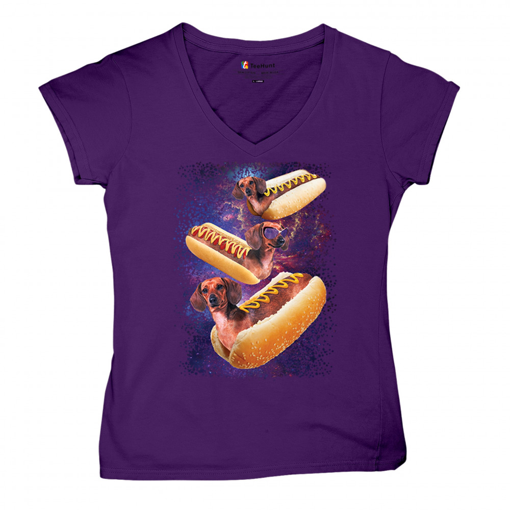 Quirky and fun tee featuring dachshunds as hotdogs in a cosmic setting. Perfect for dog and space lovers. Comfortable and durable.
