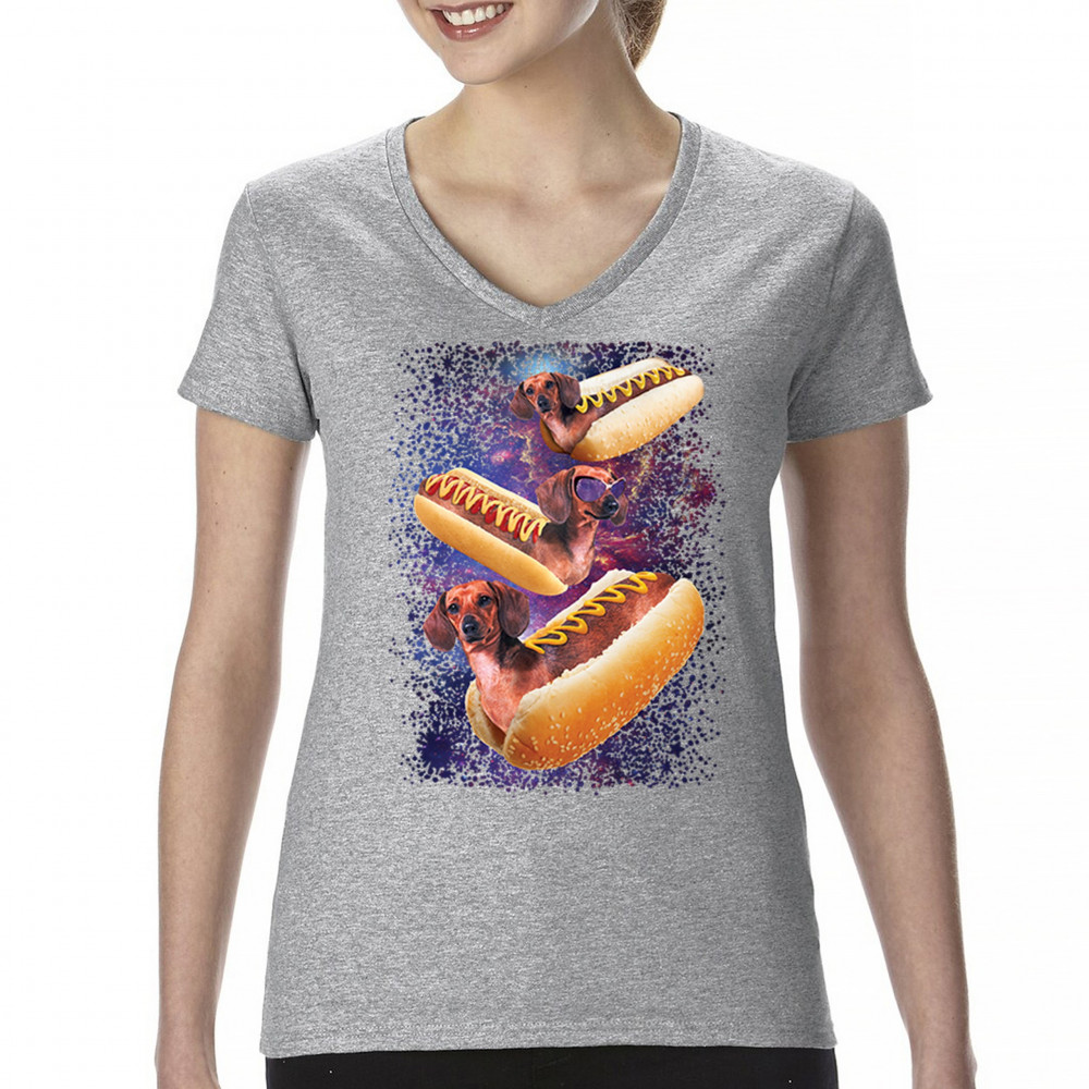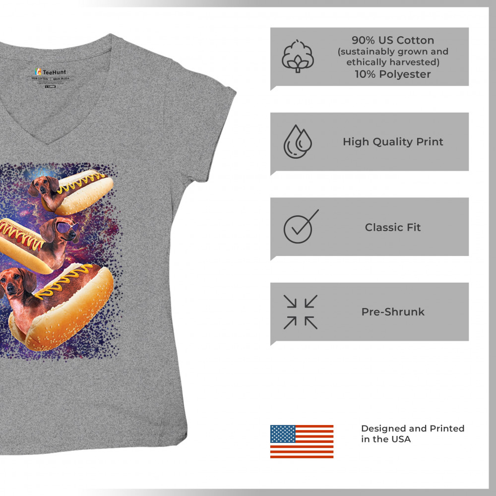 Quirky and fun tee featuring dachshunds as hotdogs in a cosmic setting. Perfect for dog and space lovers. Comfortable and durable.