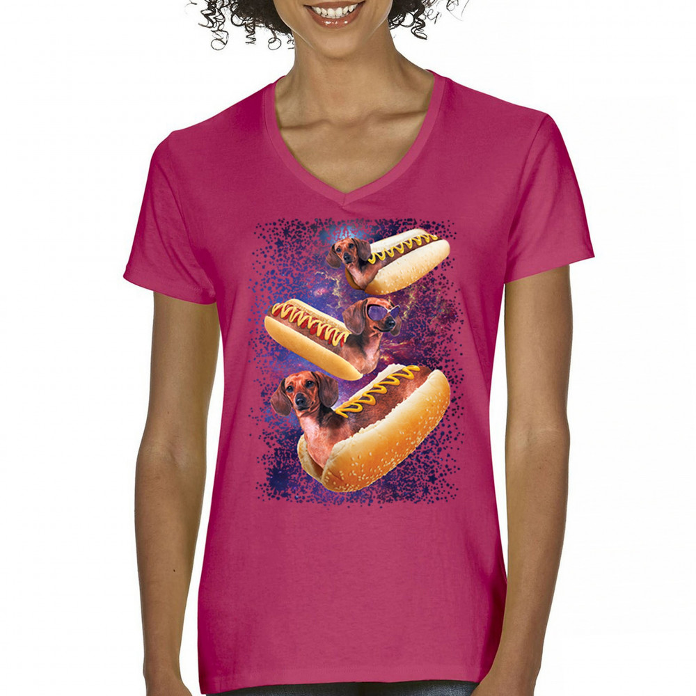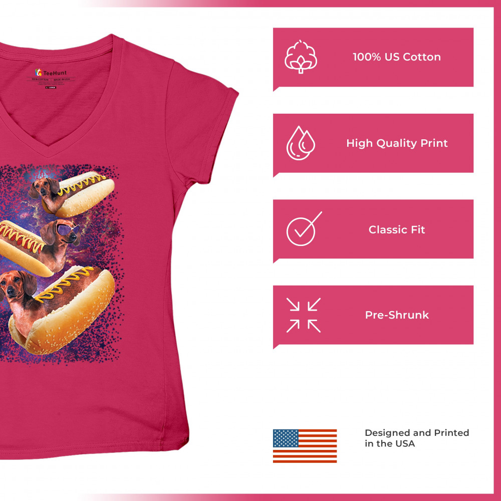 Quirky and fun tee featuring dachshunds as hotdogs in a cosmic setting. Perfect for dog and space lovers. Comfortable and durable.