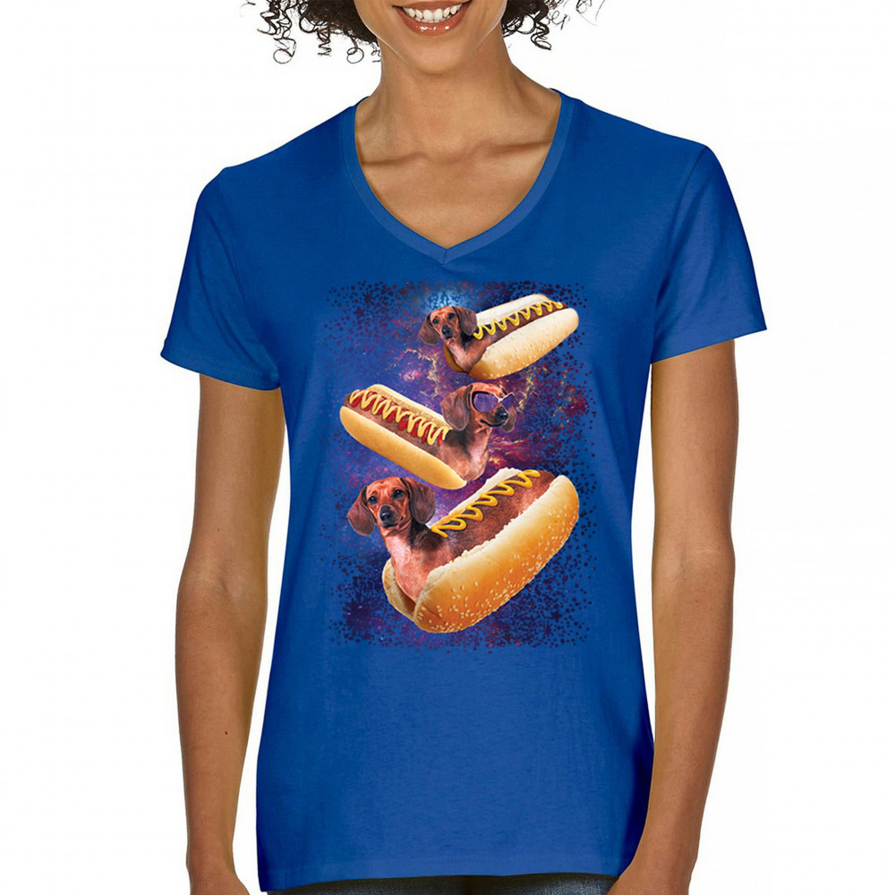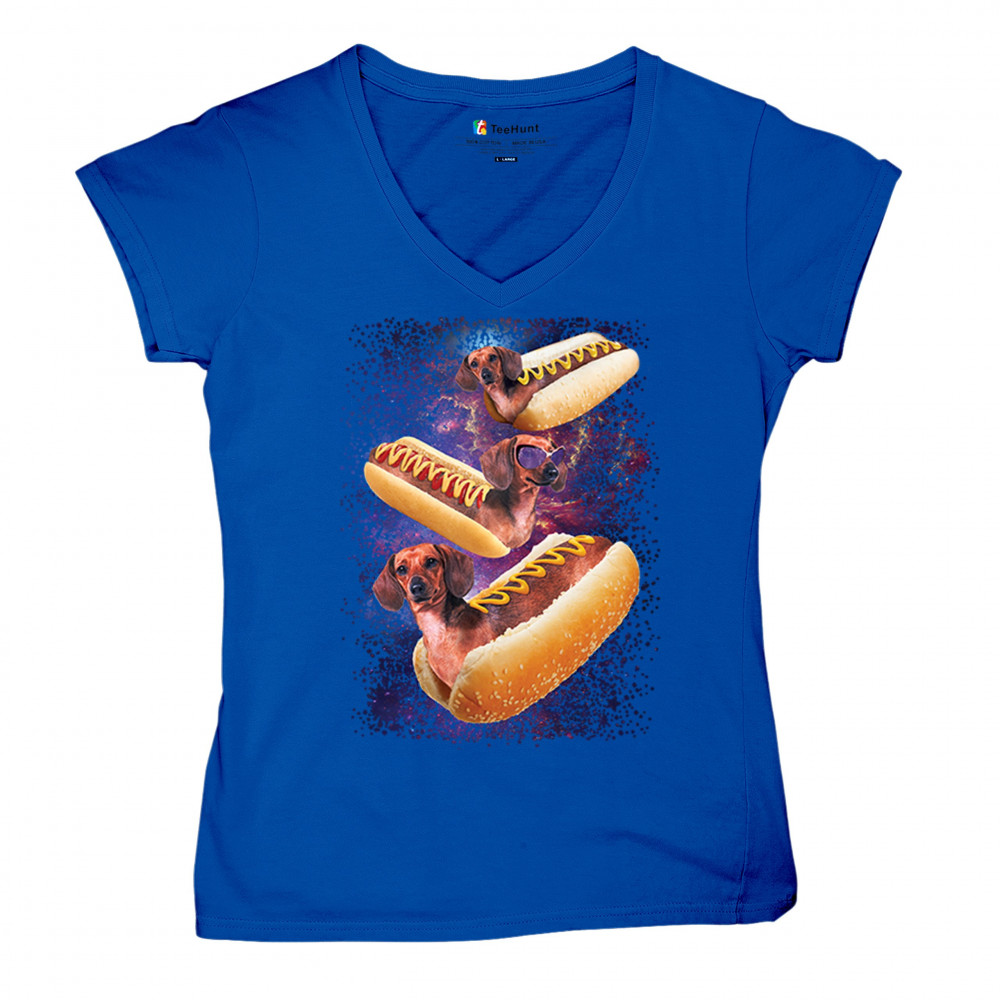 Quirky and fun tee featuring dachshunds as hotdogs in a cosmic setting. Perfect for dog and space lovers. Comfortable and durable.