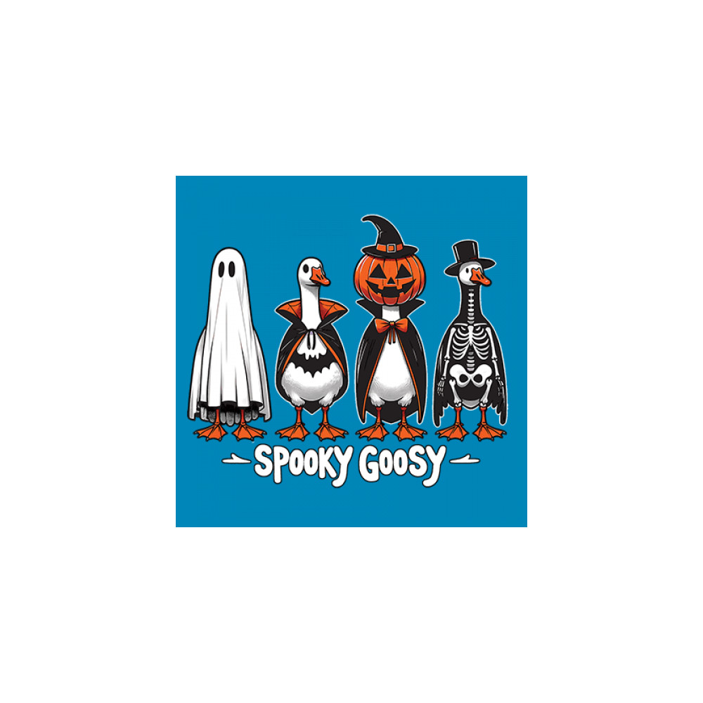 Bring the spooky fun to life with this Spooky Goosy Halloween design featuring geese in witch, skeleton, vampire, and pumpkin costumes. Perfect for haunted house nights, October 31 trick-or-treat events, or monster mash gatherings. A funny and festive choice for goose lovers and Halloween enthusiasts who enjoy creepy costume vibes.