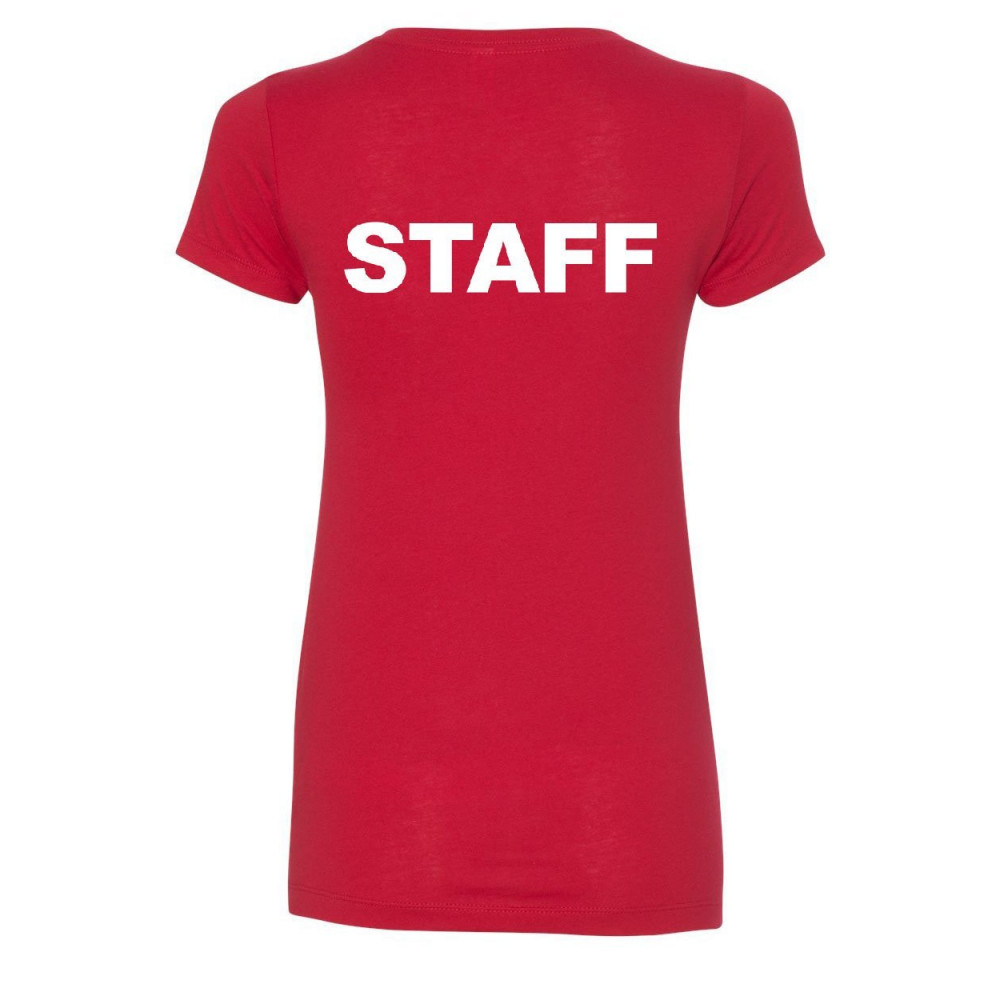 STAFF women's v-neck t-shirt event uniform employee party security red