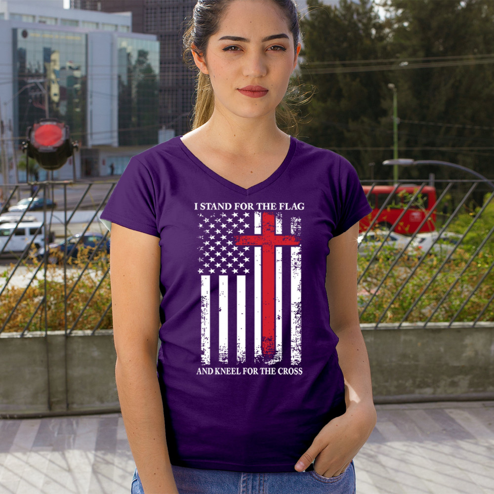 Wrap yourself in the spirit of patriotism and faith with our Stand for the Flag Kneel for the Cross design. This isn't just any Trump shirt—it's a symbol of unwavering support for American values. Featuring the iconic American flag intertwined with the Pu