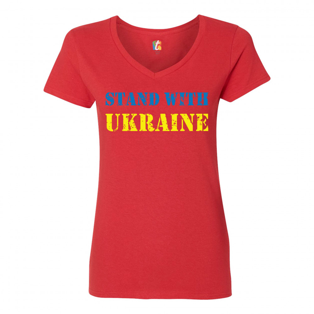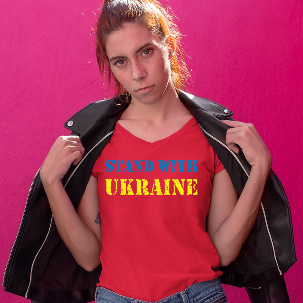 STAND WITH UKRAINE women's v-neck t-shirt stop war support ukrainians tee red