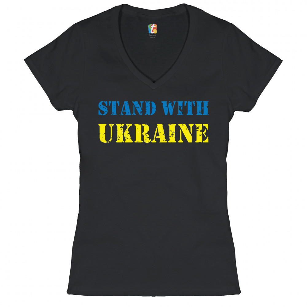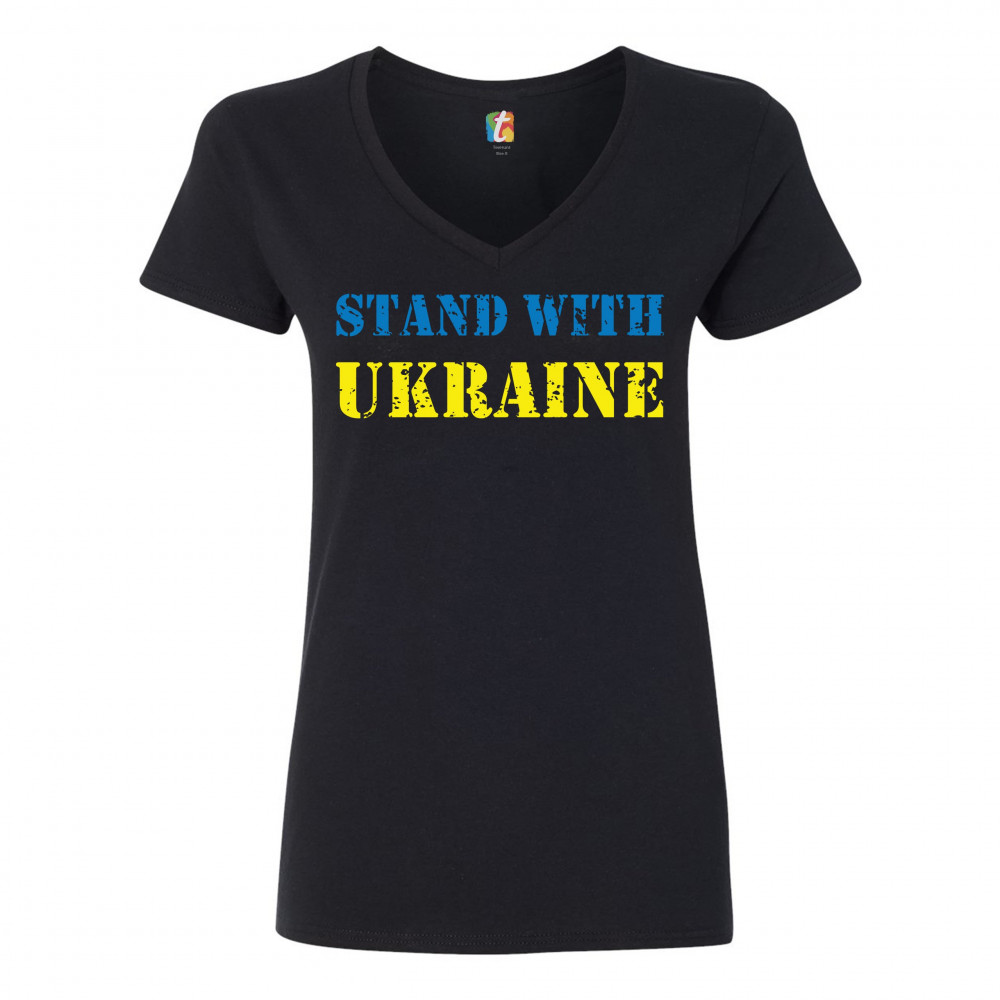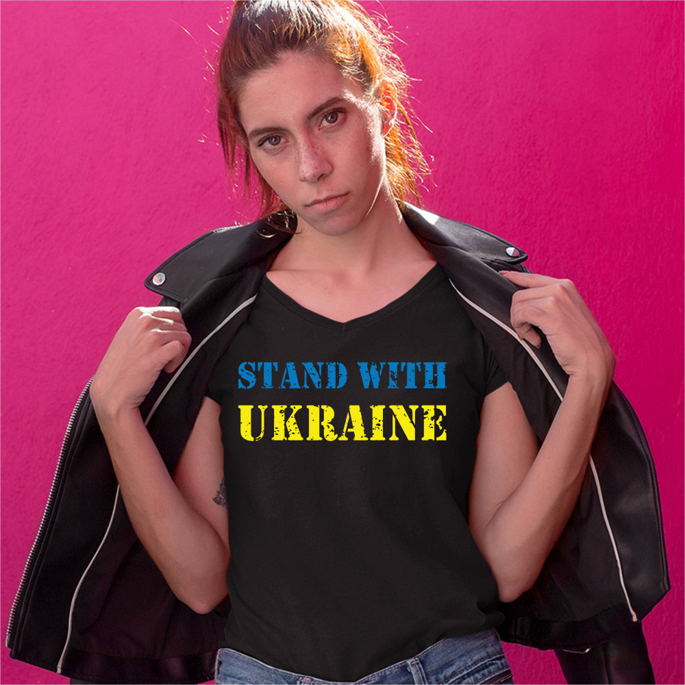 STAND WITH UKRAINE women's v-neck t-shirt stop war support ukrainians tee black