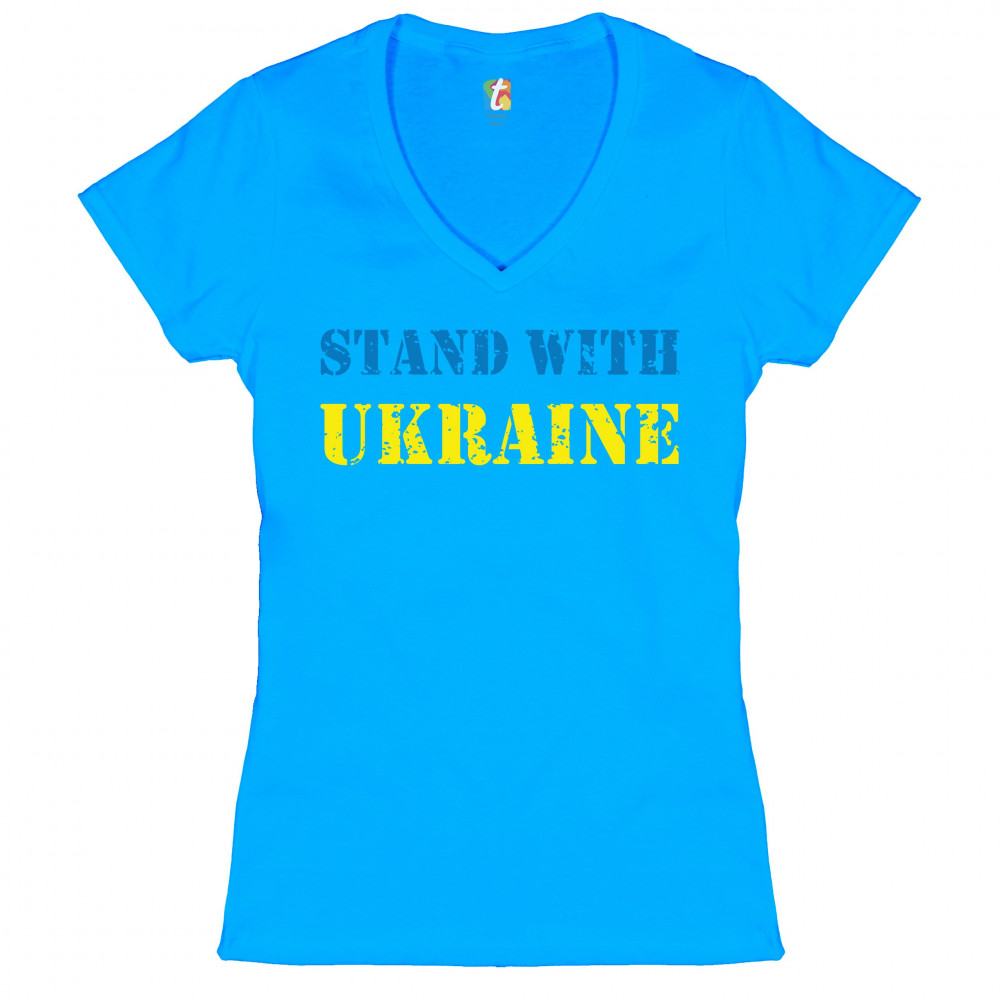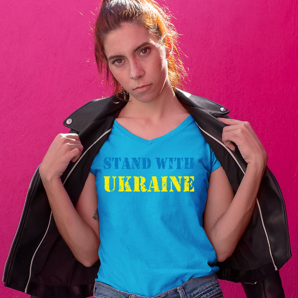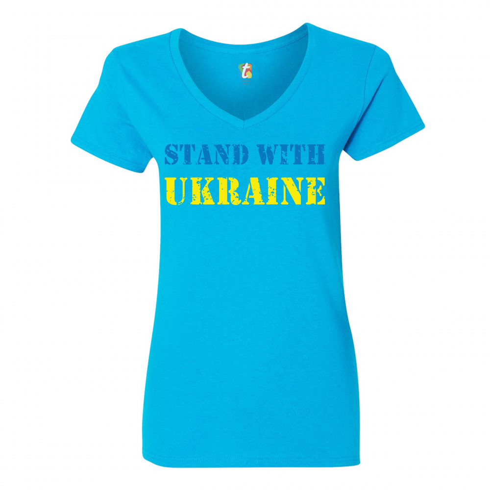 STAND WITH UKRAINE women's v-neck t-shirt stop war support ukrainians tee turquoise