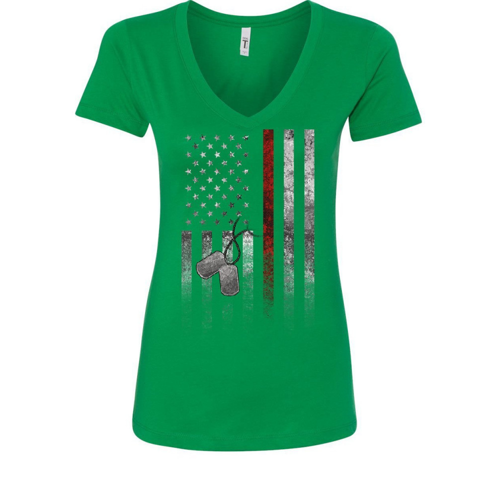 STARS AND STRIPES DOG TAGS women's v-neck t-shirt military american patriot usa green