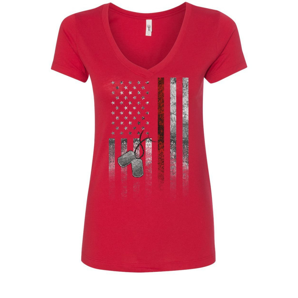 STARS AND STRIPES DOG TAGS women's v-neck t-shirt military american patriot usa red