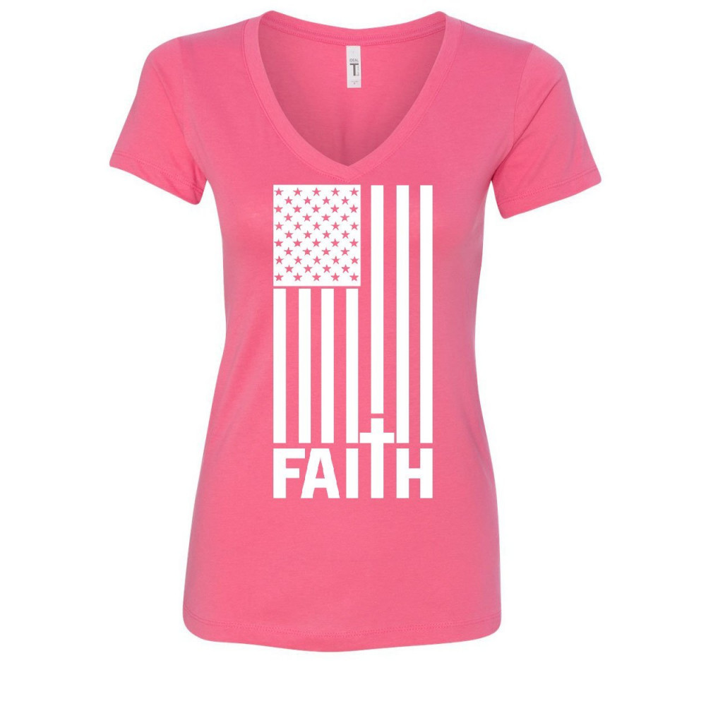 STARS AND STRIPES FAITH women's v-neck t-shirt american values cross jesus god pink