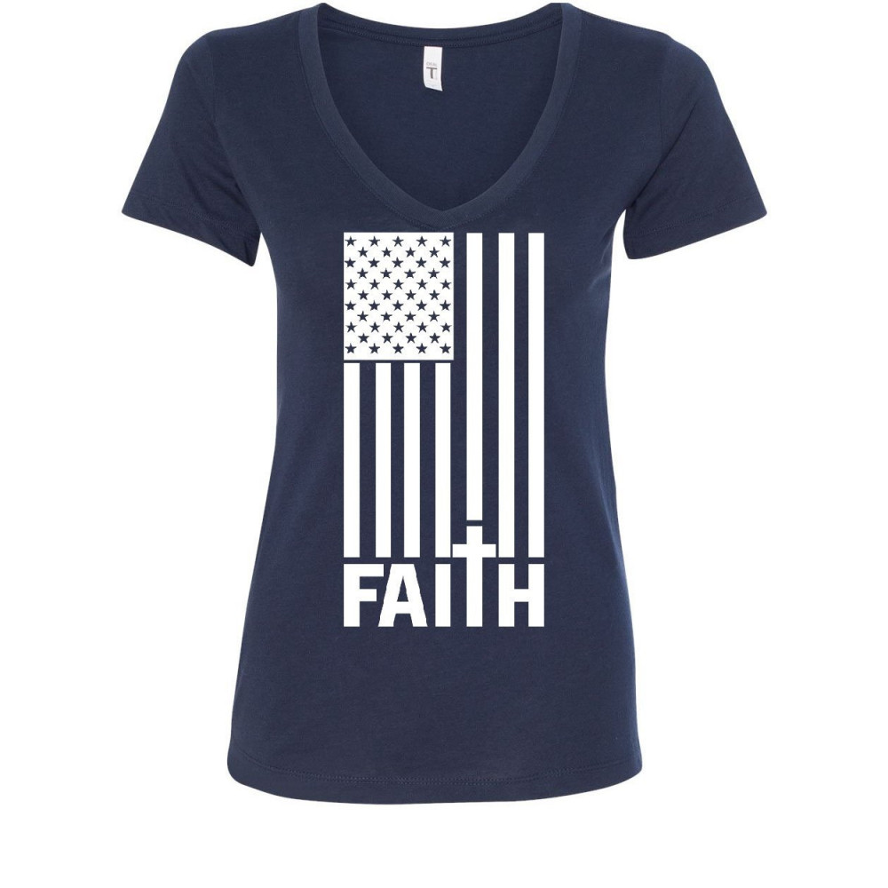 STARS AND STRIPES FAITH women's v-neck t-shirt american values cross jesus god navy blue