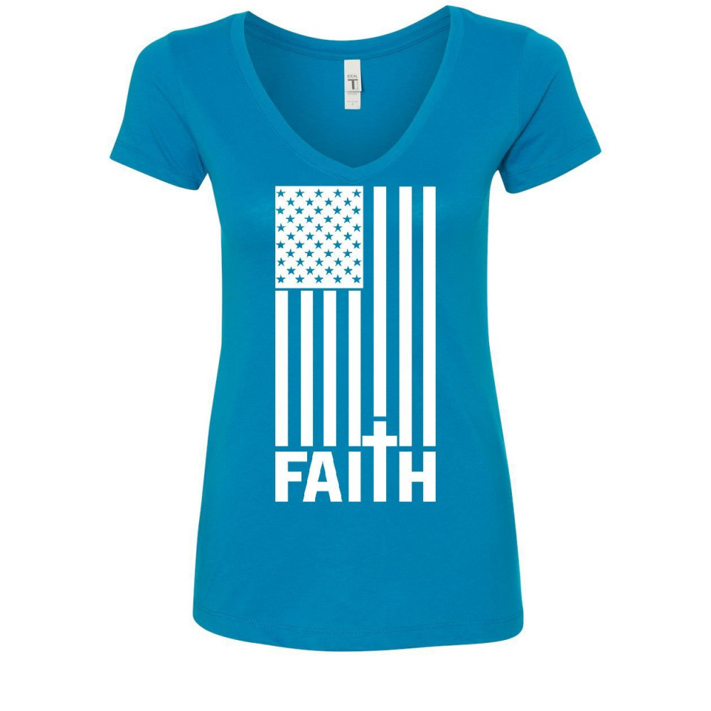 STARS AND STRIPES FAITH women's v-neck t-shirt american values cross jesus god turquoise