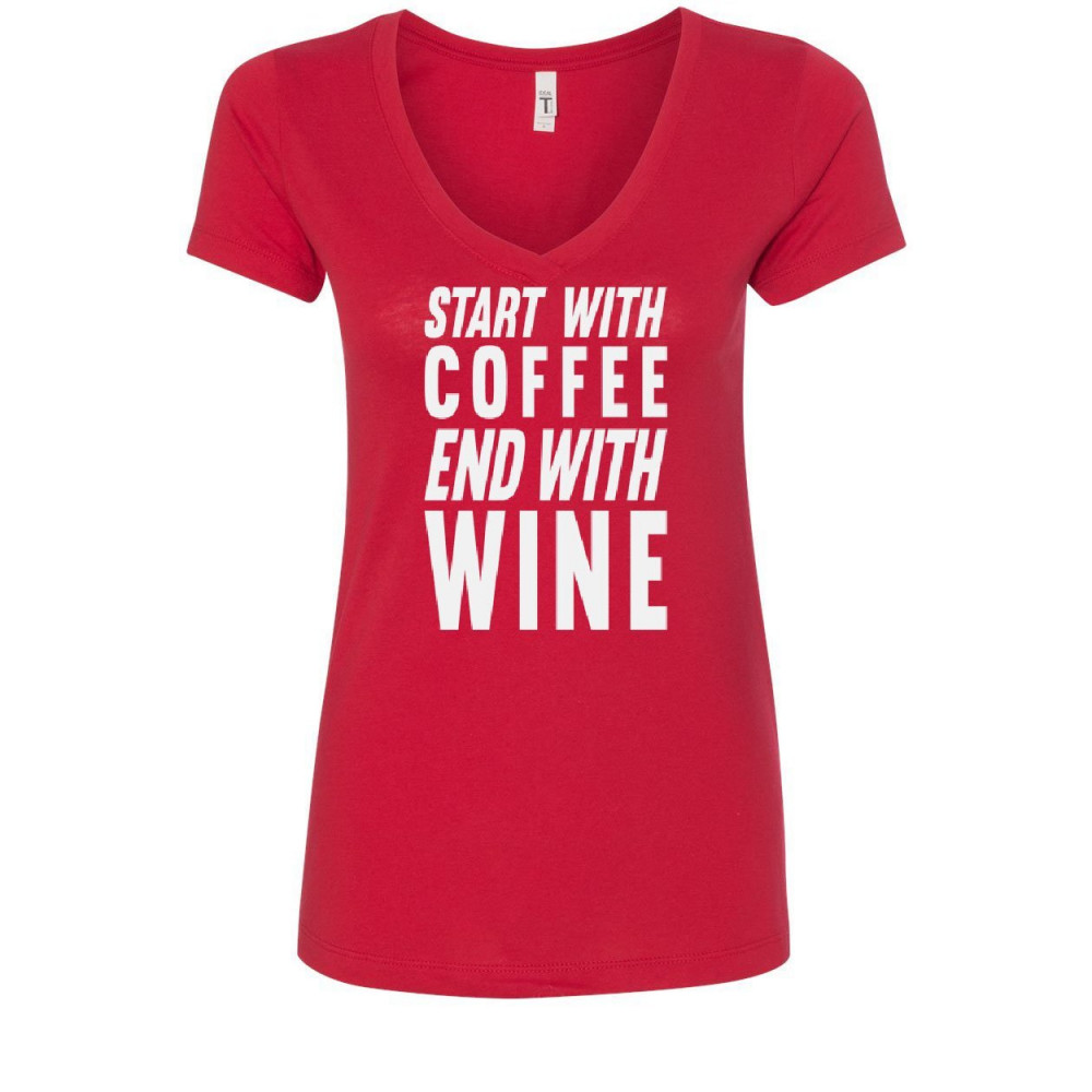 START WITH COFFEE END WITH WINE women's v-neck t-shirt drinking daily routine red