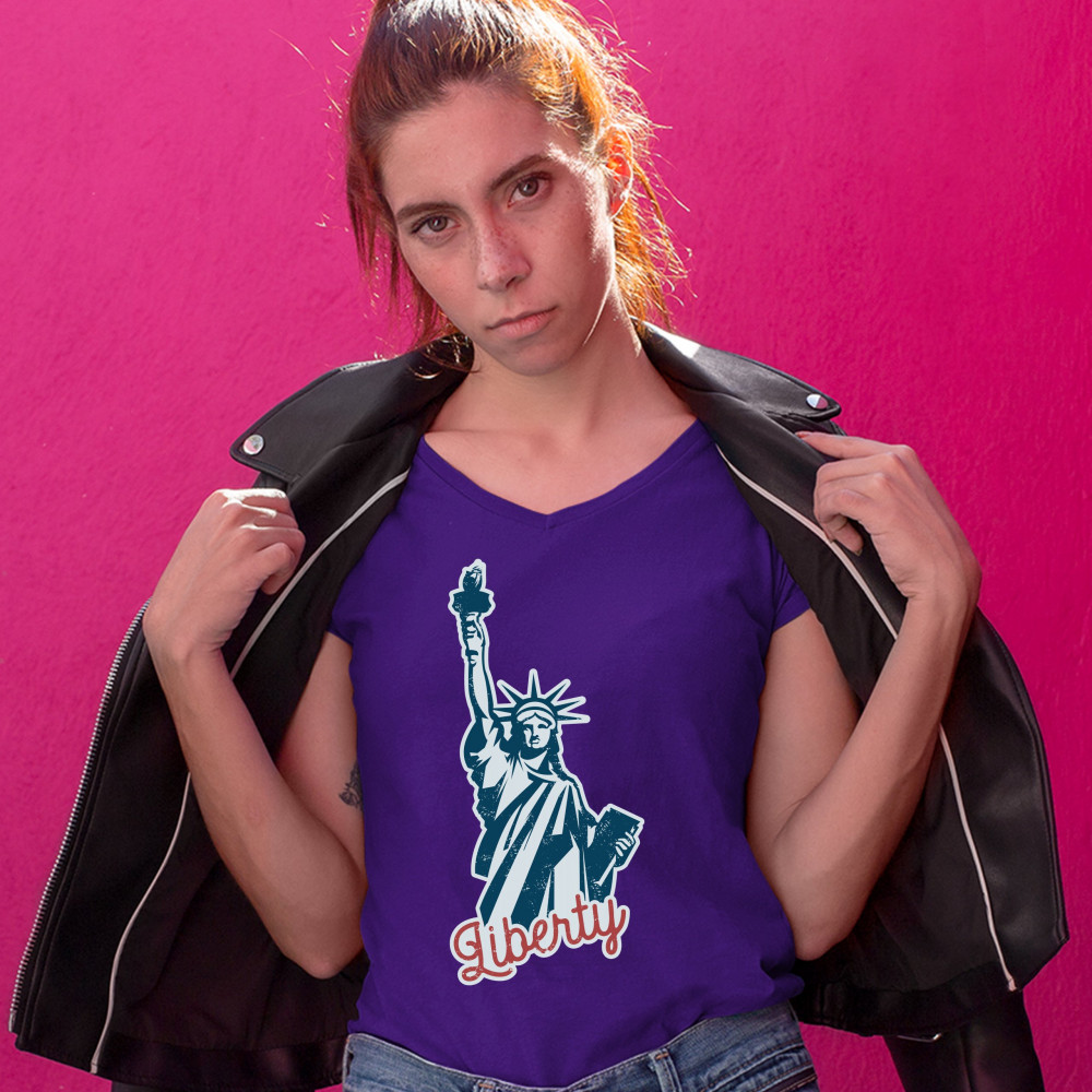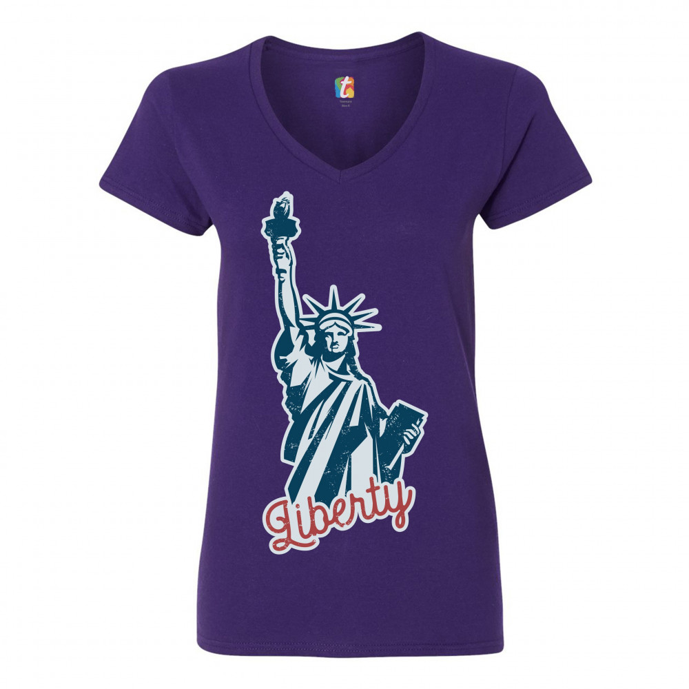 STATUE OF LIBERTY women's v-neck t-shirt freedom independence 4th of july tee purple
