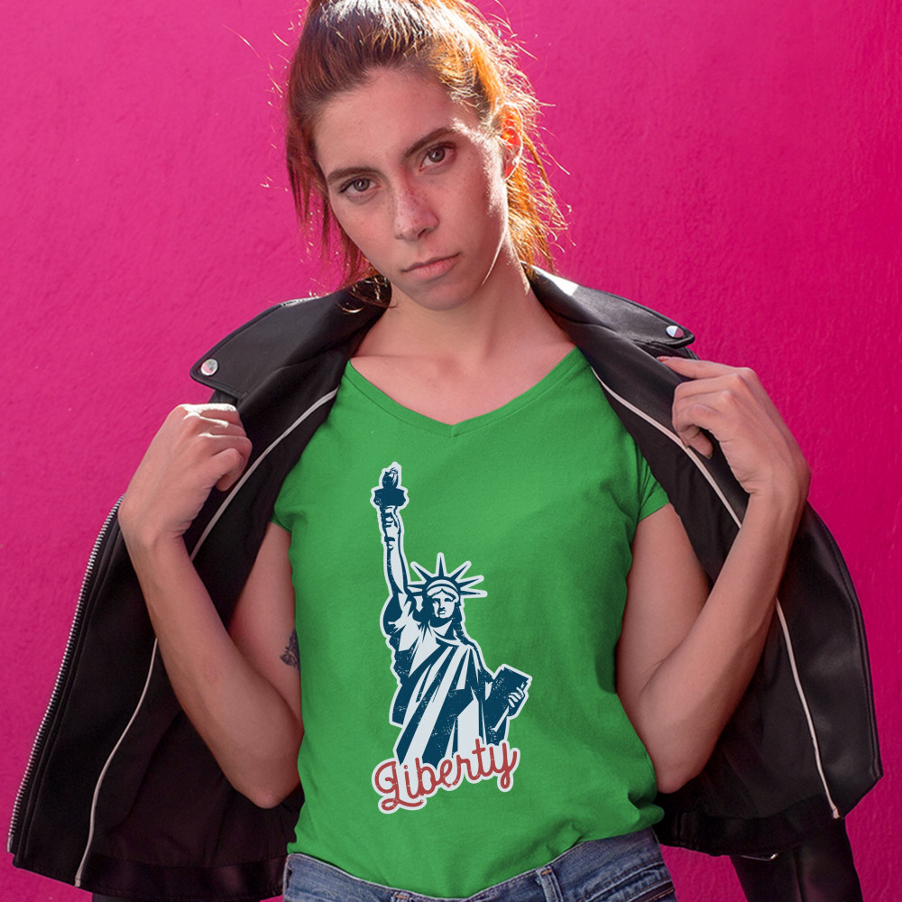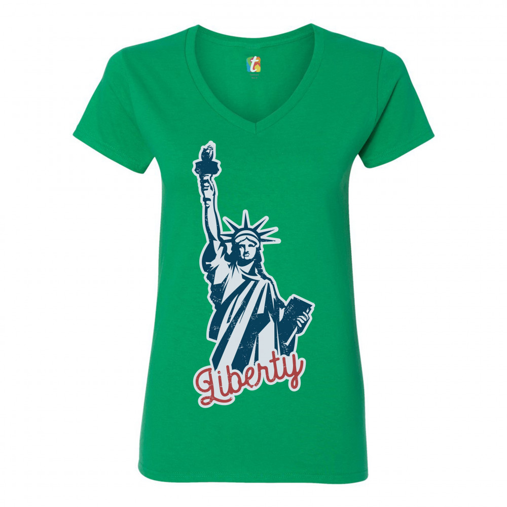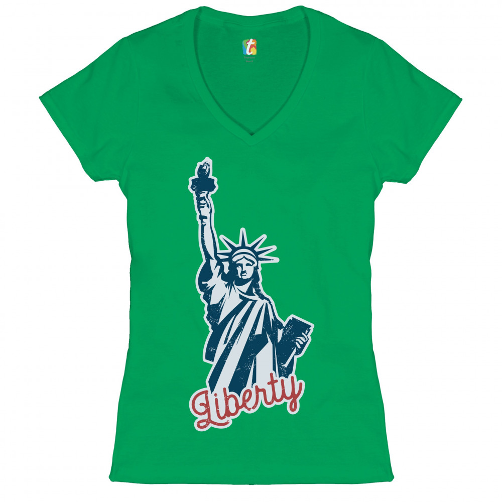 STATUE OF LIBERTY women's v-neck t-shirt freedom independence 4th of july tee green