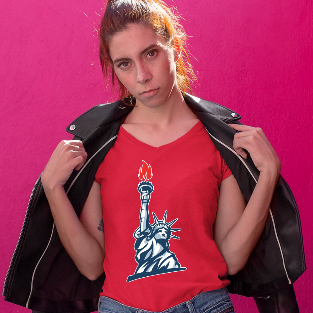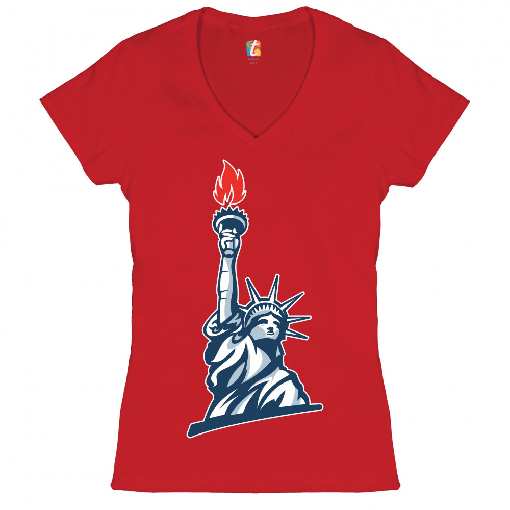 STATUE OF LIBERTY women's v-neck t-shirt manhattan new york 4th of july tee red