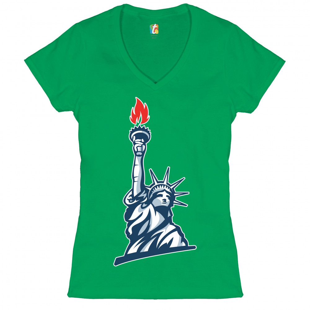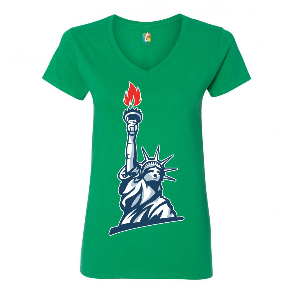 STATUE OF LIBERTY women's v-neck t-shirt manhattan new york 4th of july tee green
