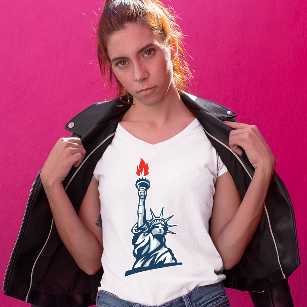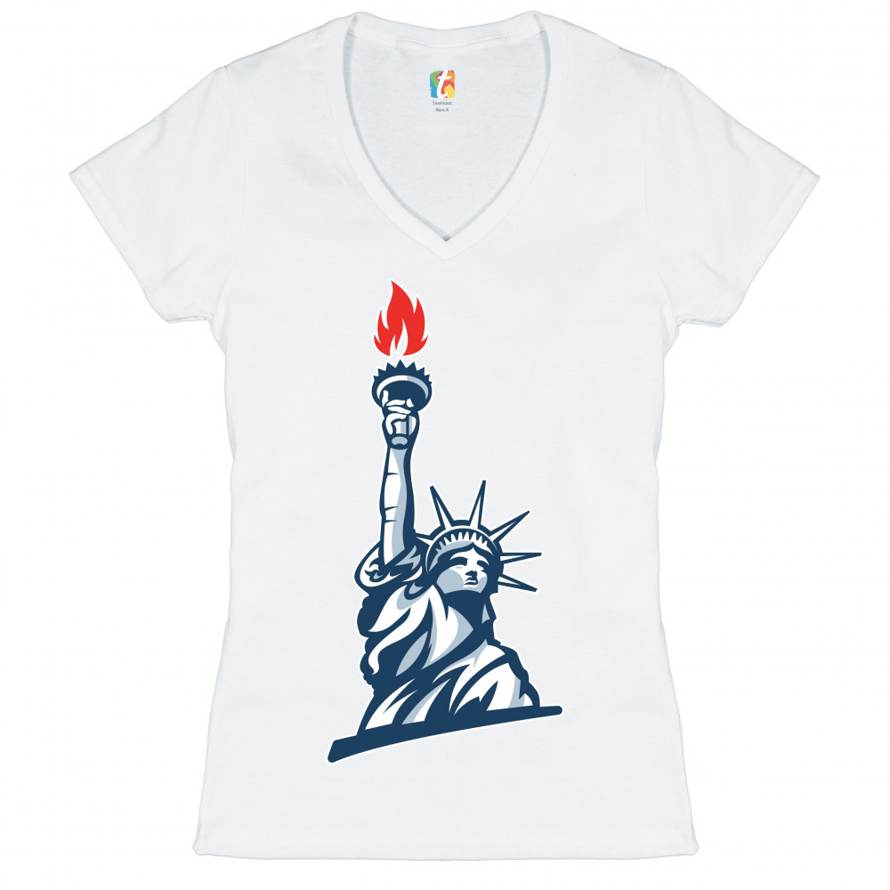 STATUE OF LIBERTY women's v-neck t-shirt manhattan new york 4th of july tee white