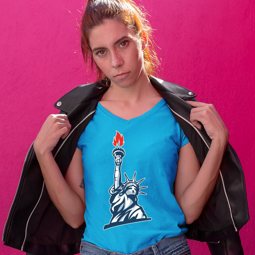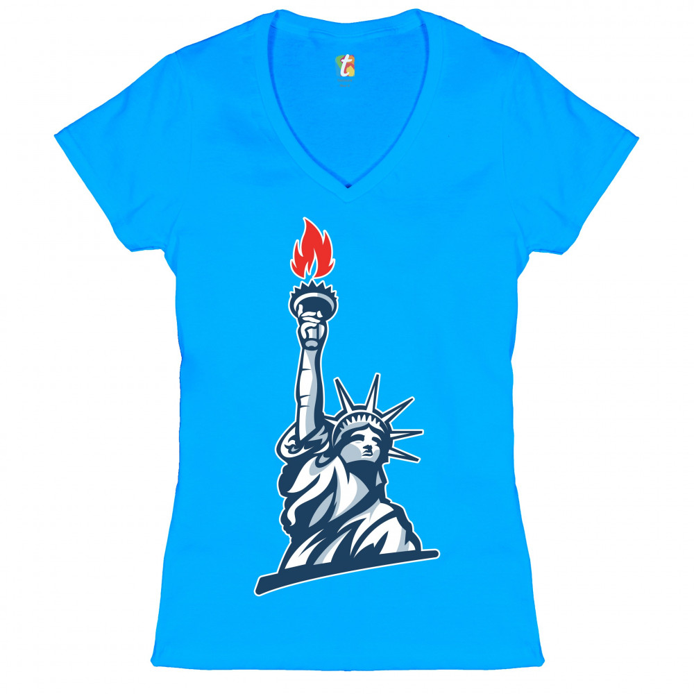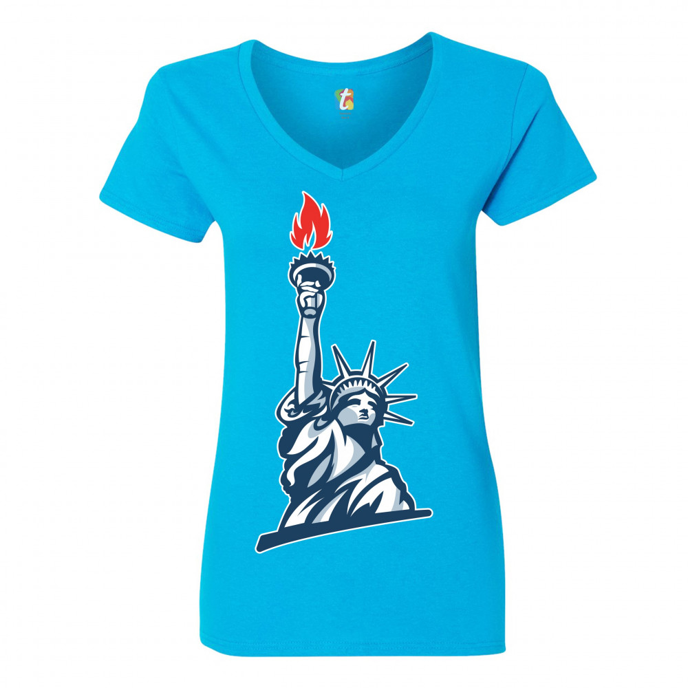 STATUE OF LIBERTY women's v-neck t-shirt manhattan new york 4th of july tee turquoise