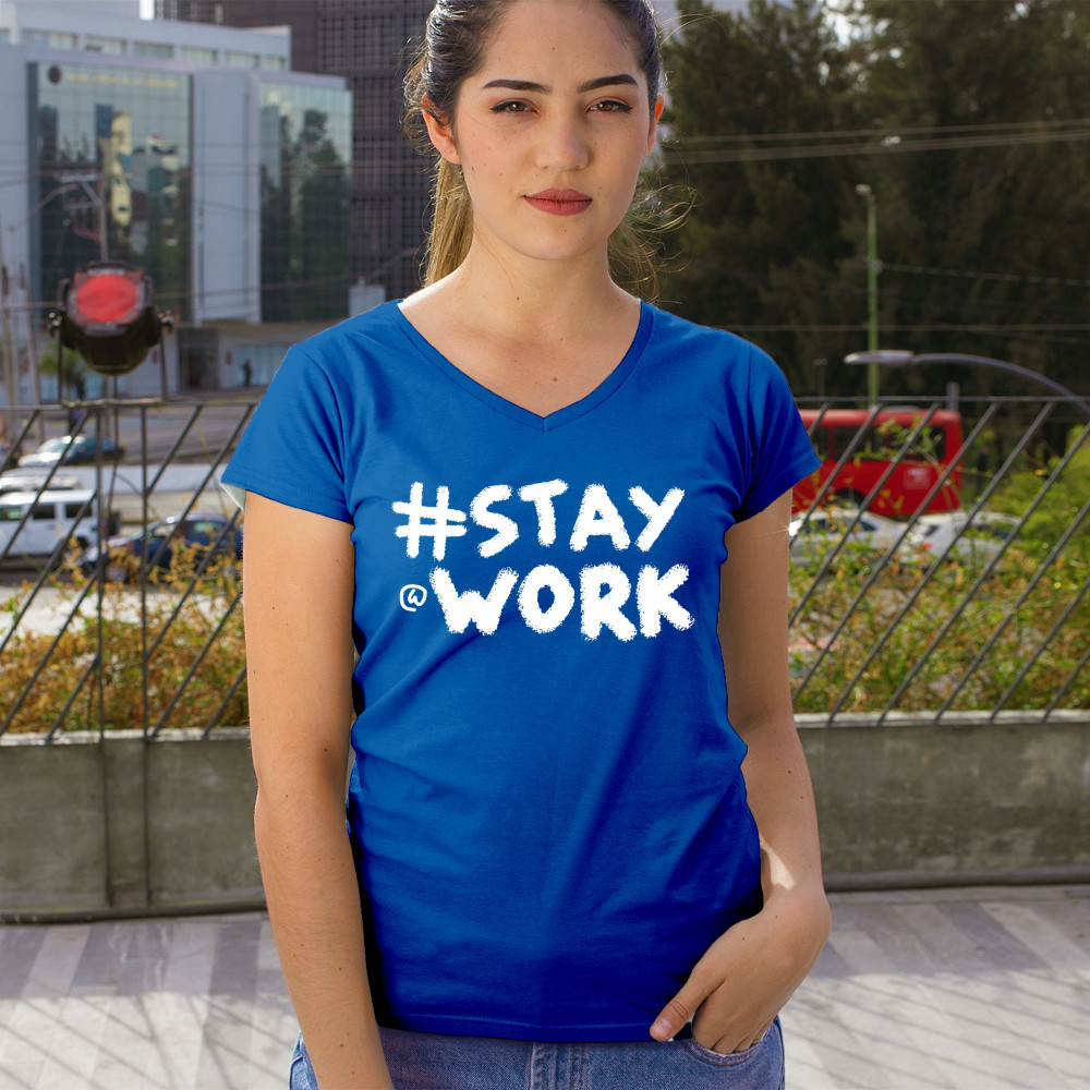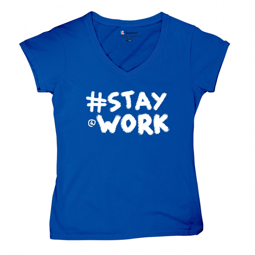 STAY AT WORK FUNNY ELON MUSK TWEET PARODY women's v-neck t-shirt sarcasm tee royal blue