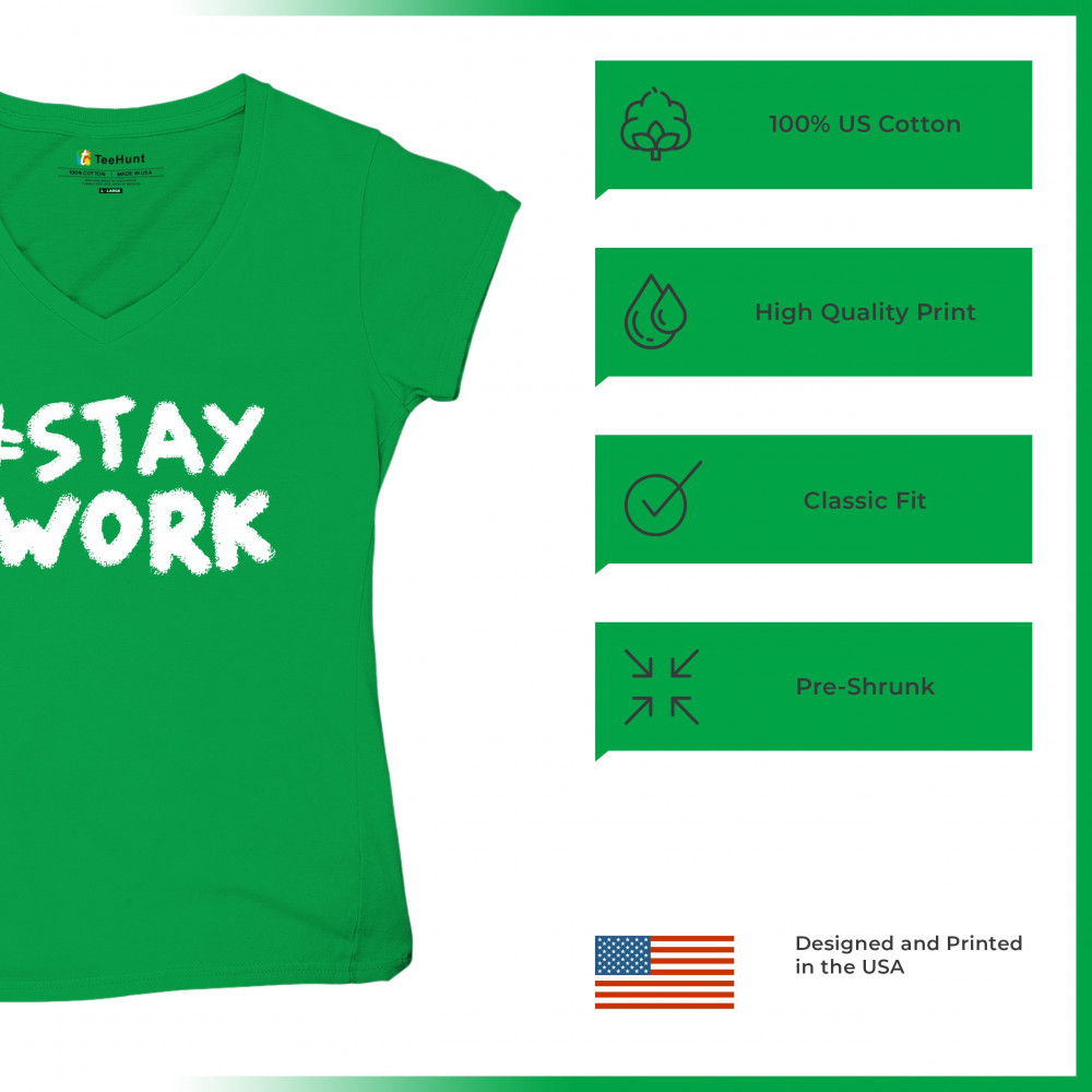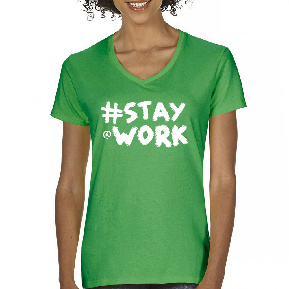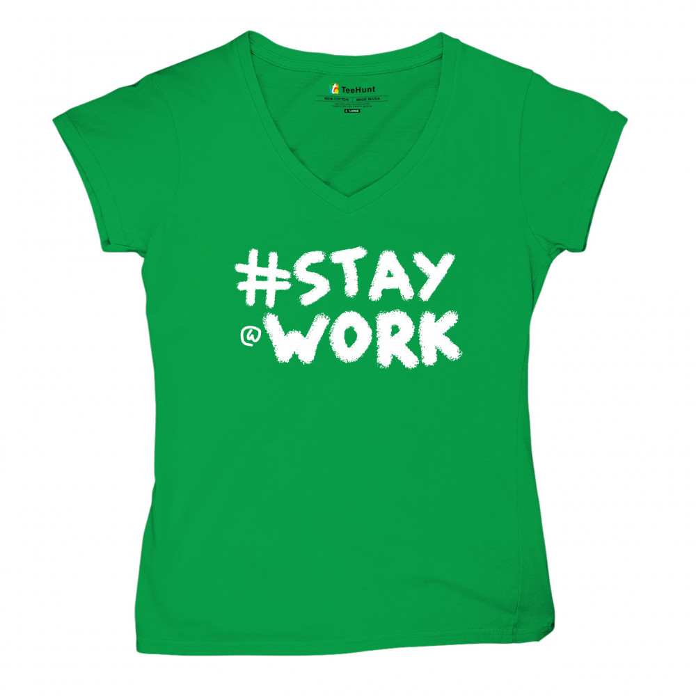 STAY AT WORK FUNNY ELON MUSK TWEET PARODY women's v-neck t-shirt sarcasm tee green