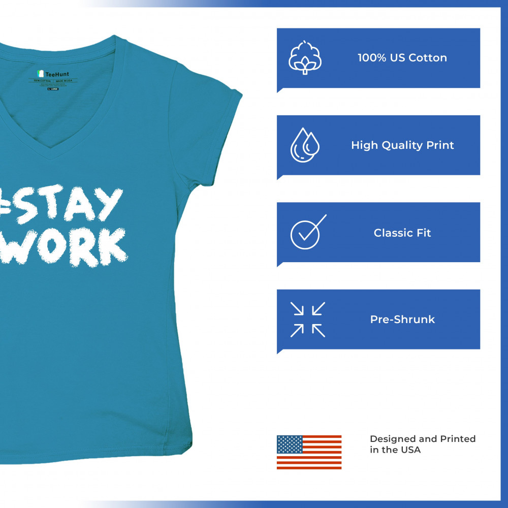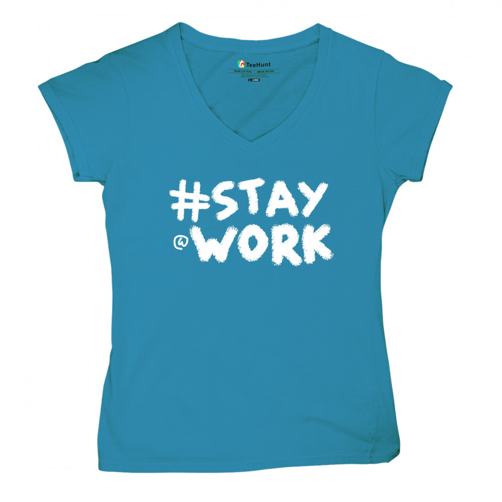 STAY AT WORK FUNNY ELON MUSK TWEET PARODY women's v-neck t-shirt sarcasm tee turquoise