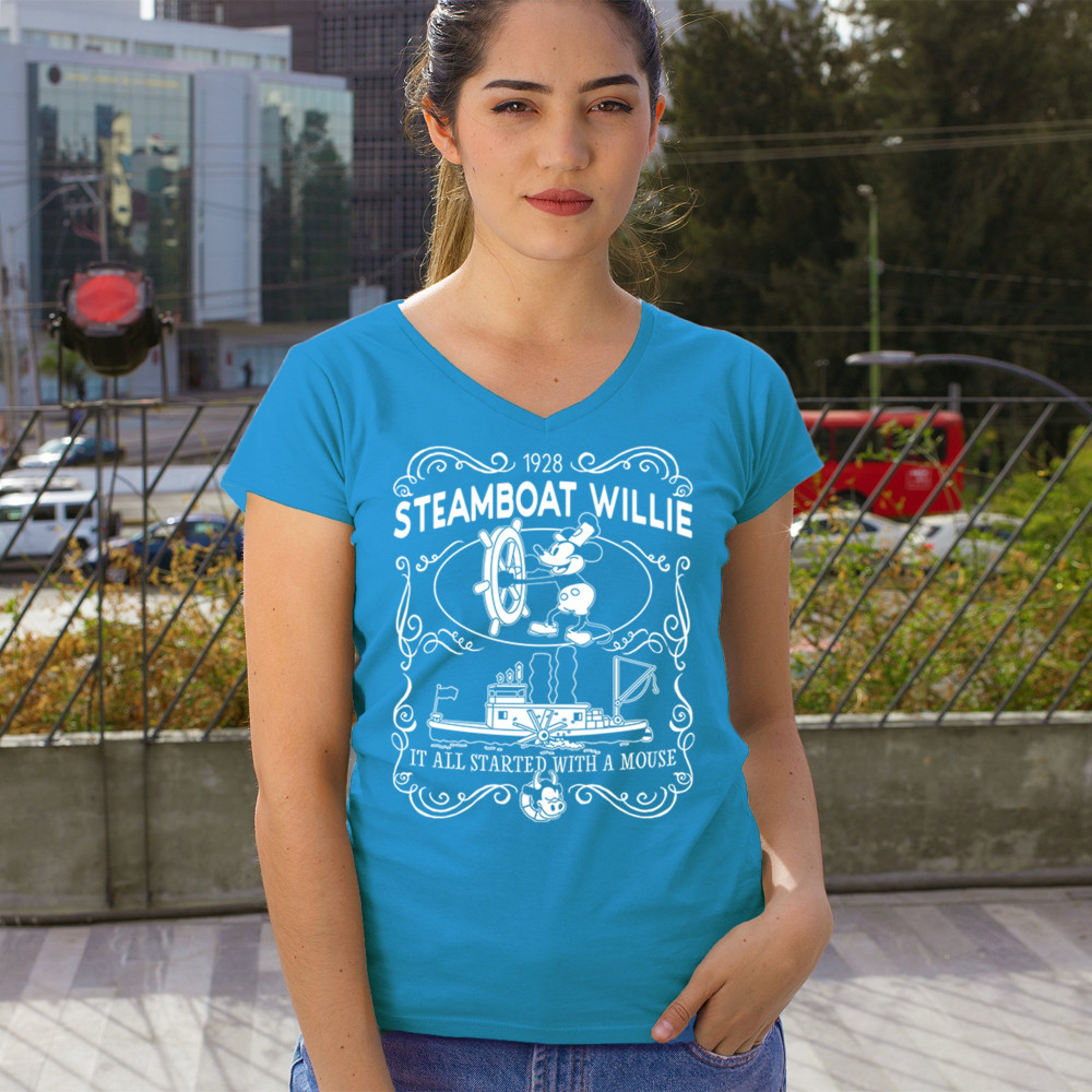 Navigate the waters of nostalgia with Steamboat Willie at the helm, accompanied by the enduring reminder, 'The magic traces back to a little friend.'