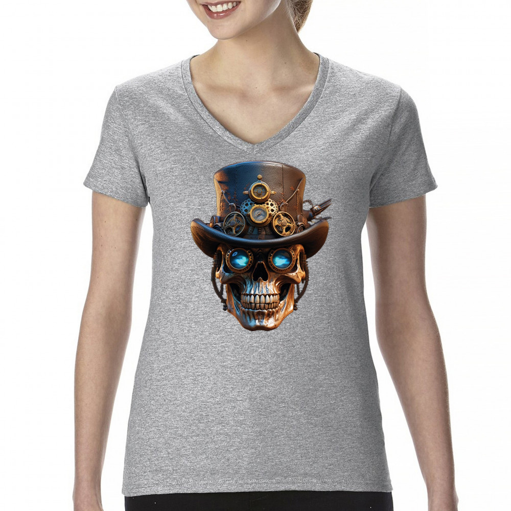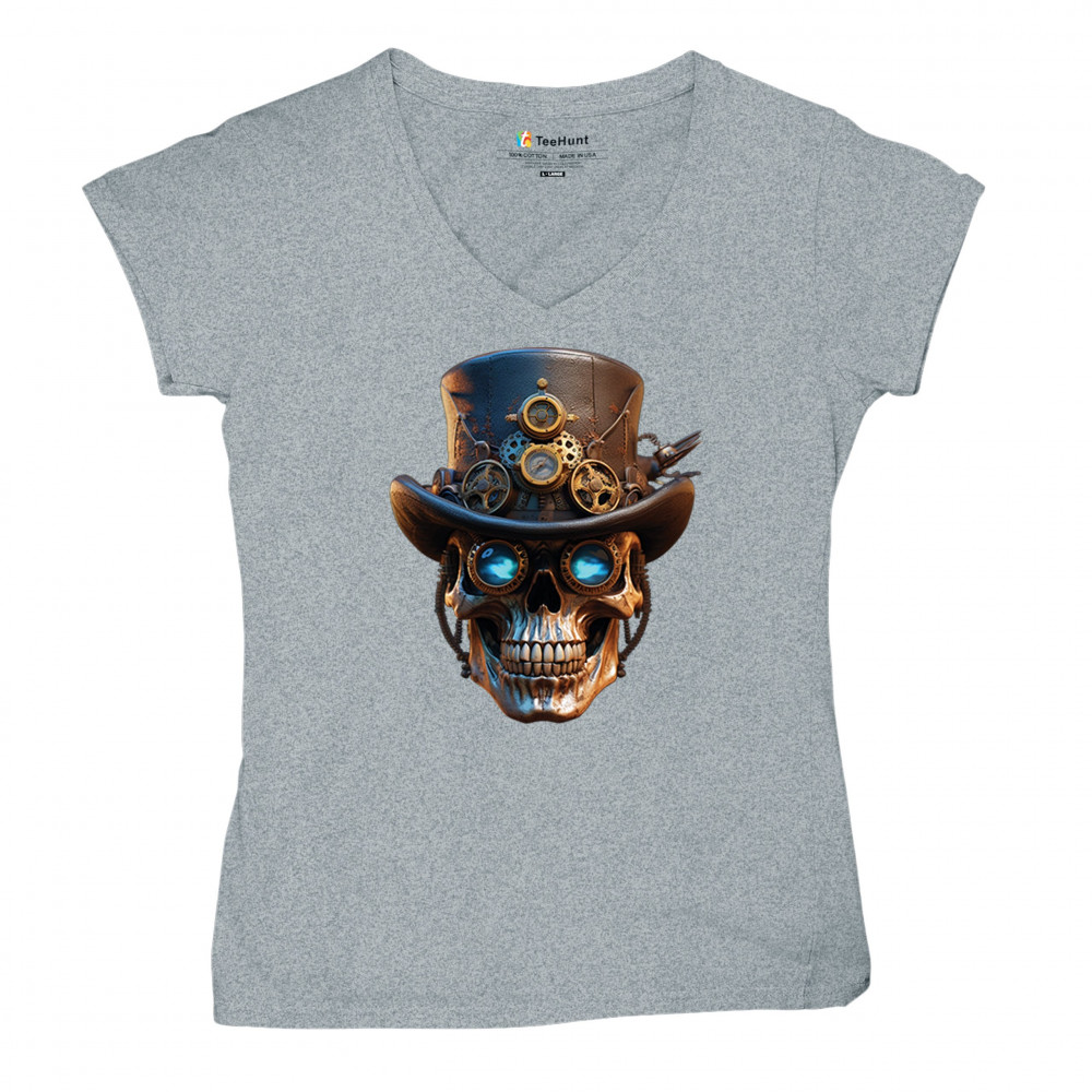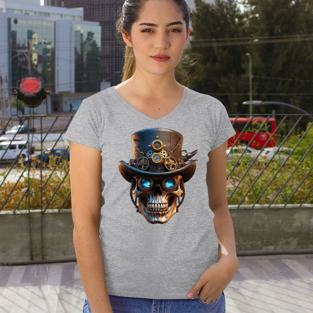 Steampunk skull shirt with gothic retro-futurism. Perfect for Halloween, cosplay, biker rallies, and edgy rebel fashion lovers.