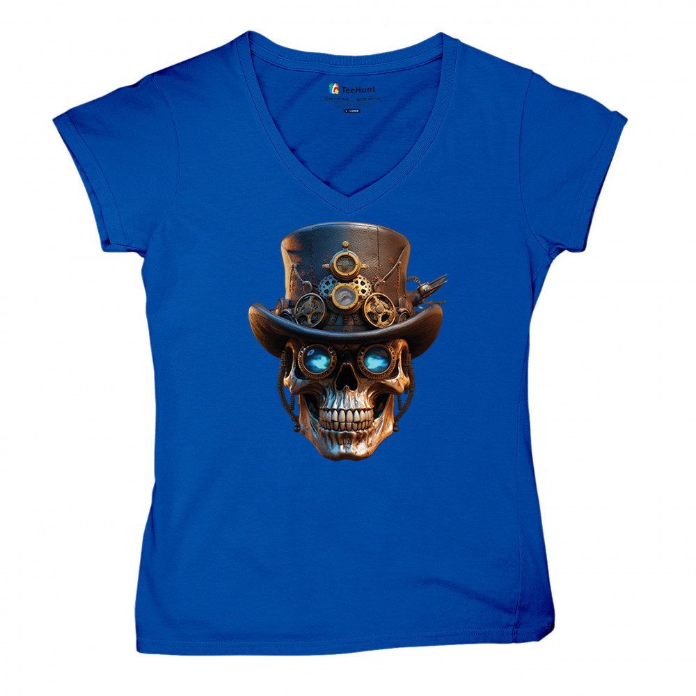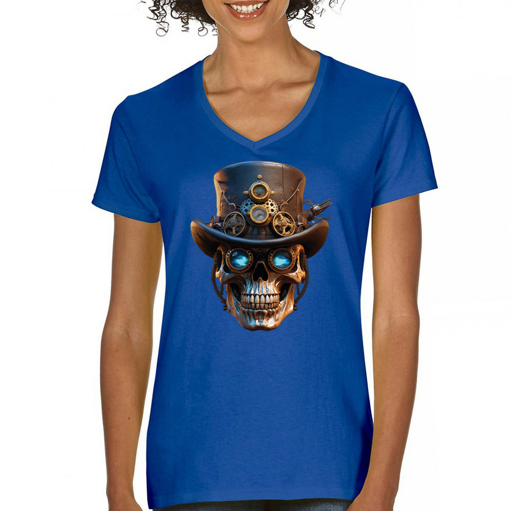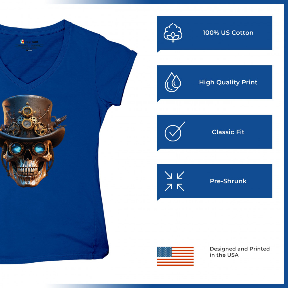Steampunk skull shirt with gothic retro-futurism. Perfect for Halloween, cosplay, biker rallies, and edgy rebel fashion lovers.