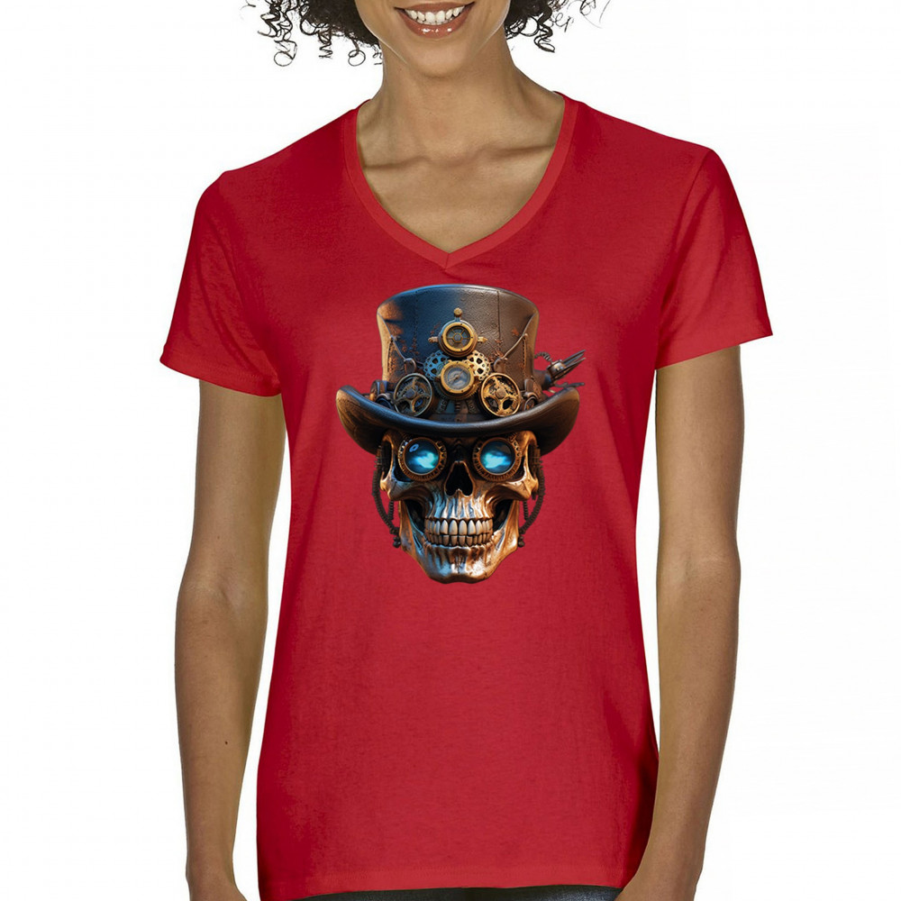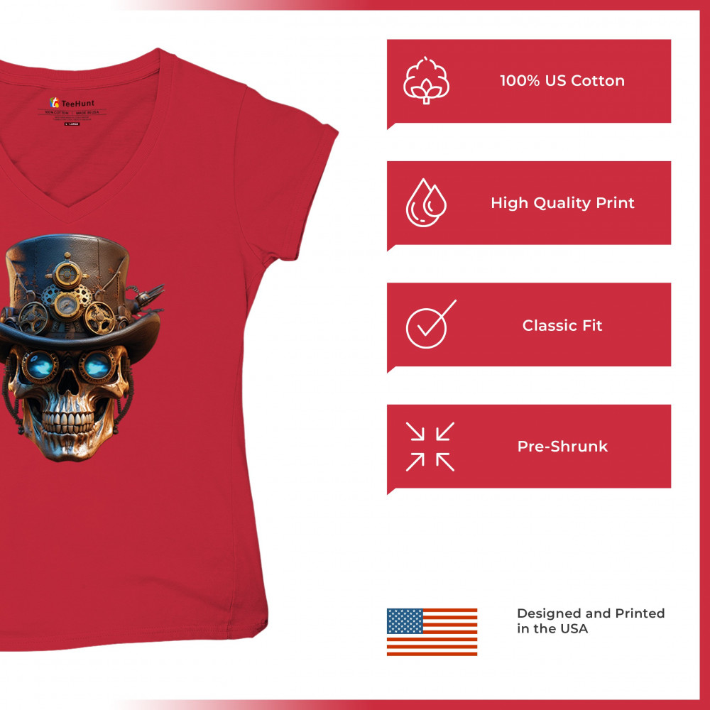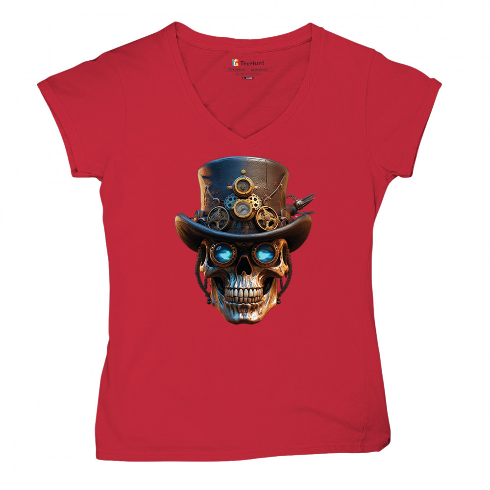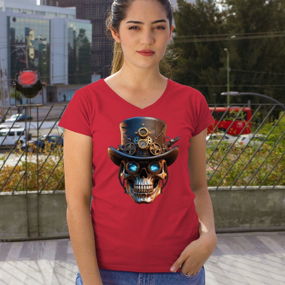 Steampunk skull shirt with gothic retro-futurism. Perfect for Halloween, cosplay, biker rallies, and edgy rebel fashion lovers.