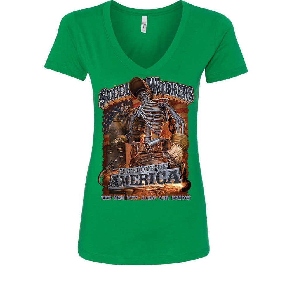 STEELWORKERS - BACKBONE OF AMERICA steel workers backbone of america women's v-neck t-shirt welding iron metal green