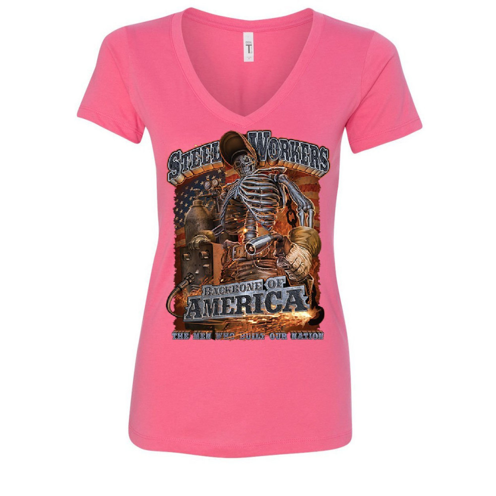 STEELWORKERS - BACKBONE OF AMERICA steel workers backbone of america women's v-neck t-shirt welding iron metal pink