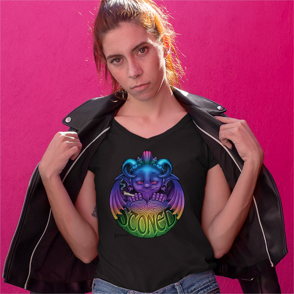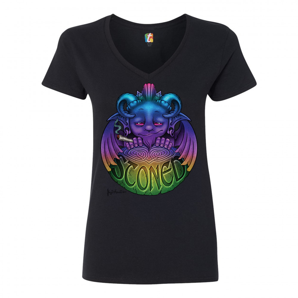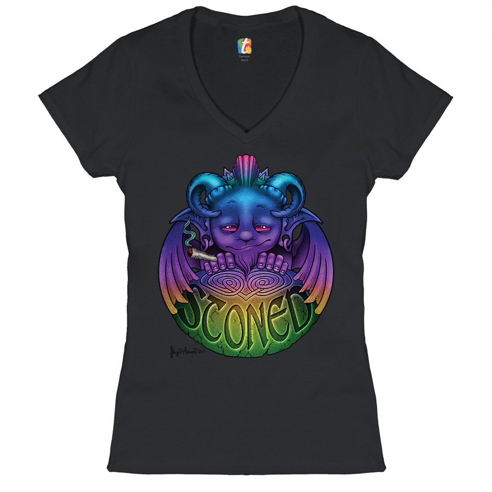 STONED GARGOYLE women's v-neck t-shirt pot marijuana joint funny weird 420 tee black