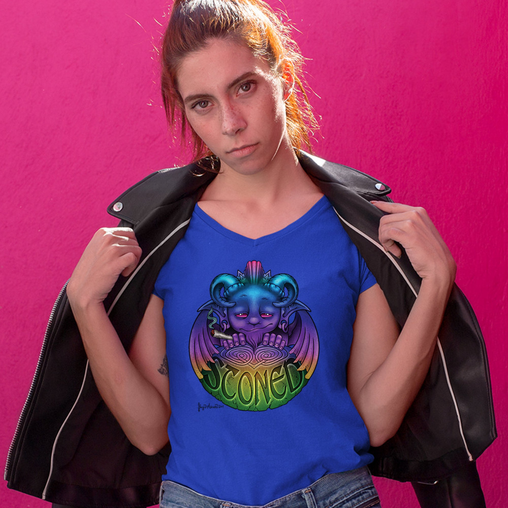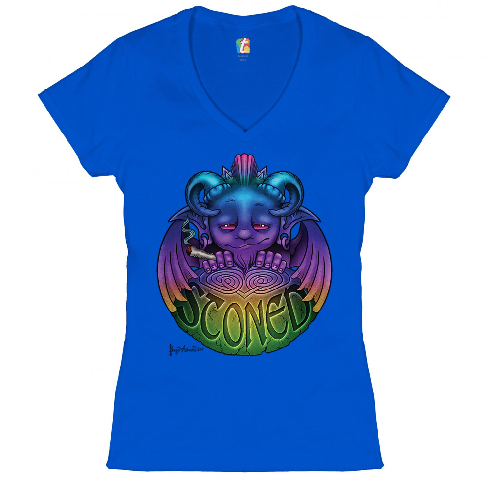 STONED GARGOYLE women's v-neck t-shirt pot marijuana joint funny weird 420 tee royal blue