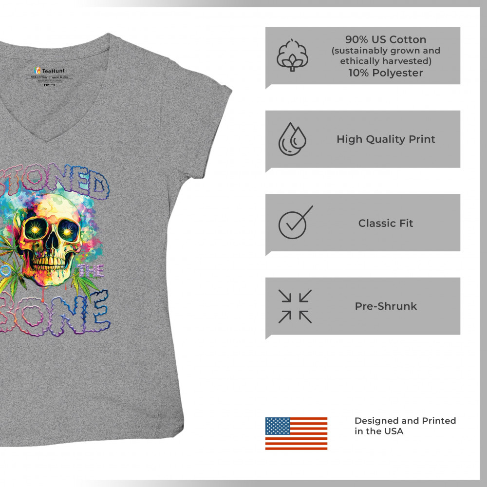 Turn heads with this bold, psychedelic “Stoned to the Bone†skull tee—loaded with neon colors, weed leaves, and a trippy aesthetic. It’s built for cannabis lovers, hippies, festival-goers, and party people living the high life. The ultimate head shop style and 420 fashion statement.